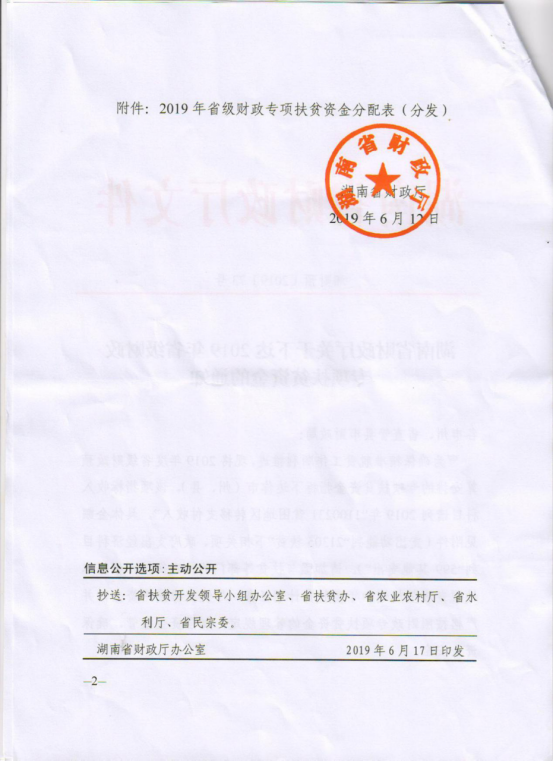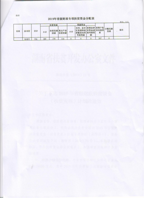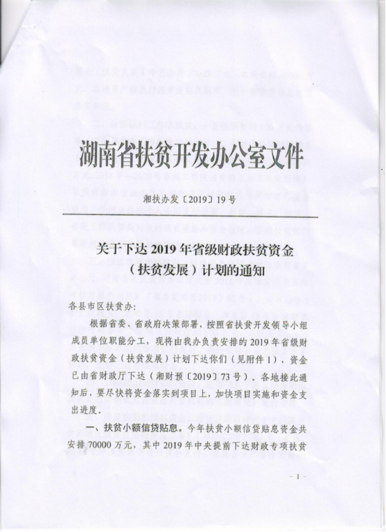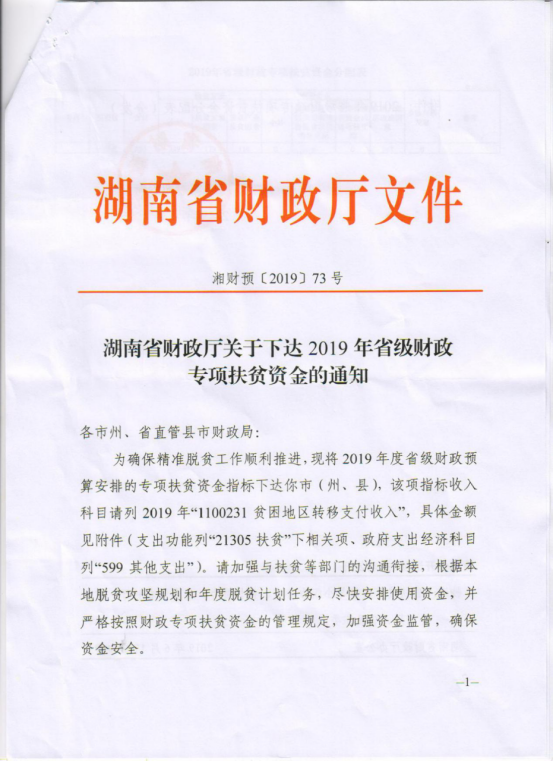关于下达2019年省级财政专项扶贫资金的通知