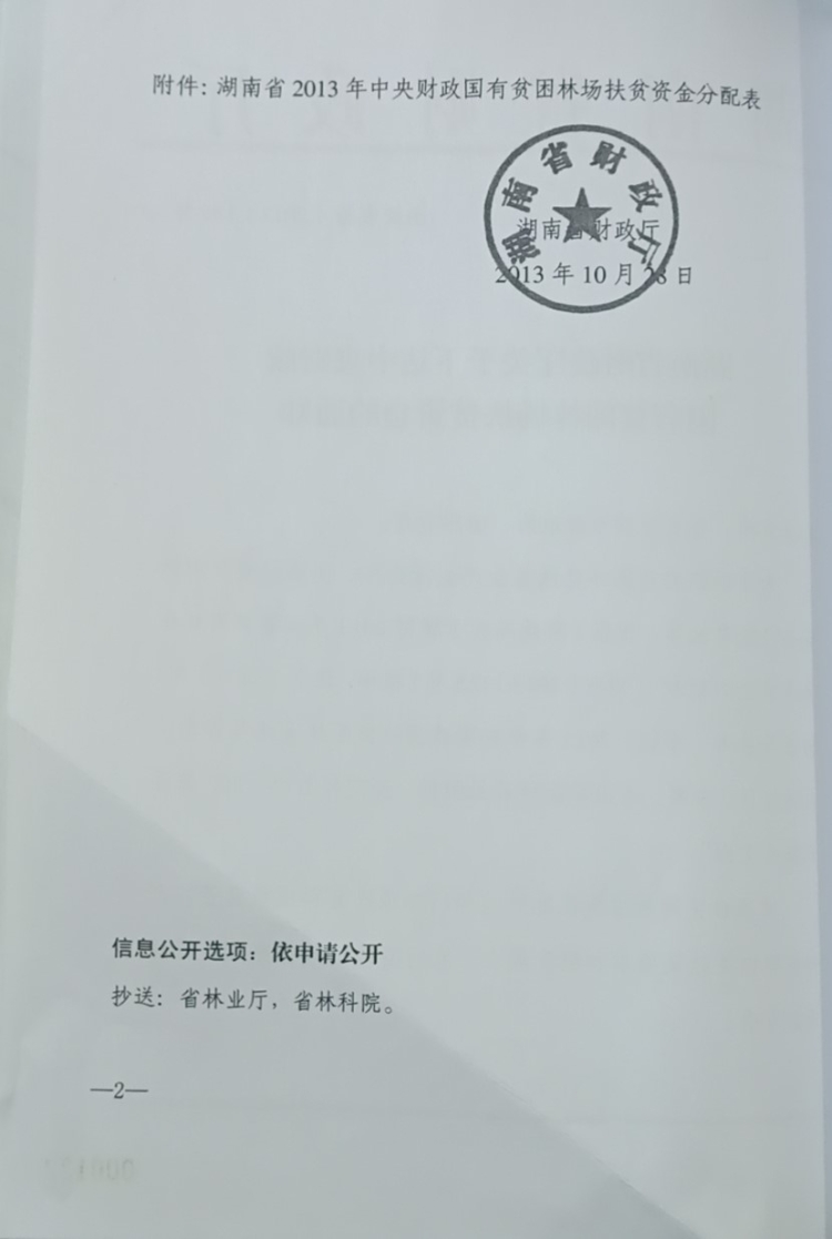 湖南省财政厅关于下达中央财政国有贫困林场扶贫资金的通知