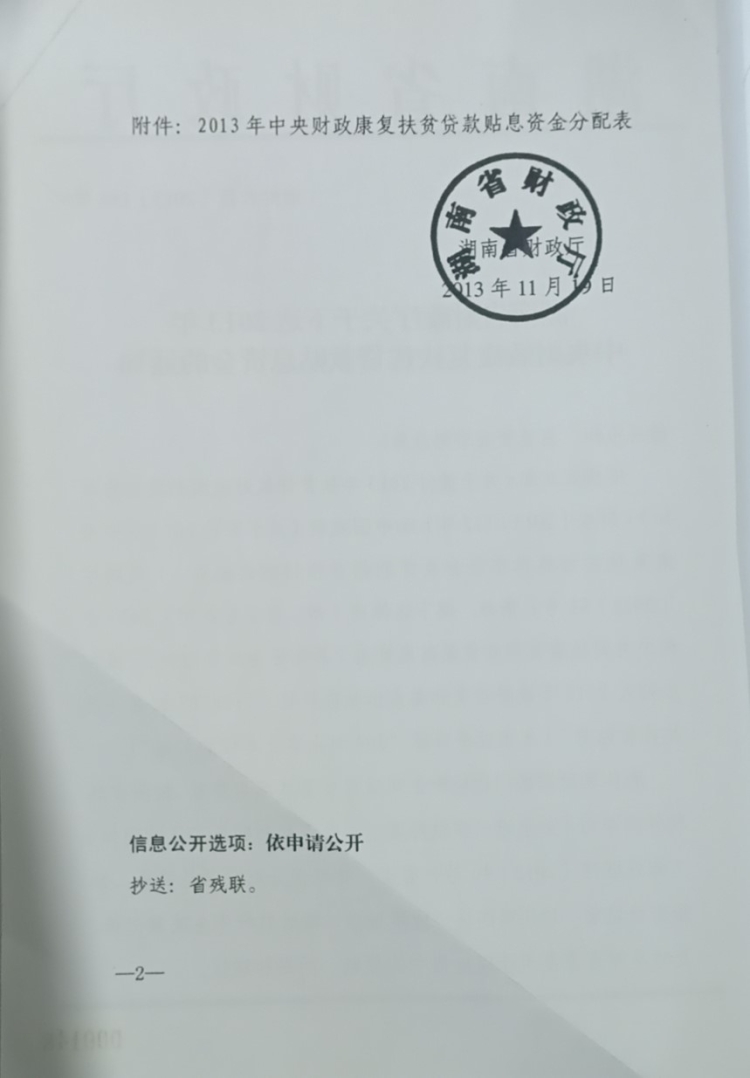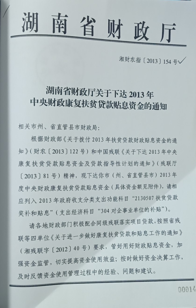 湖南是财政厅关于下达2013年中央财政康复扶贫贷款贴息资金的通知