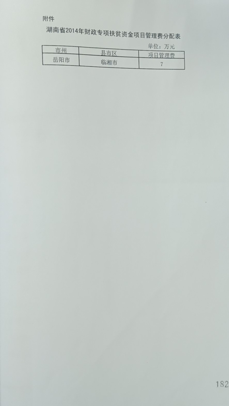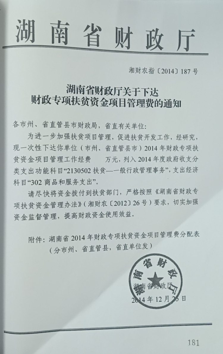 湖南省财政厅关于下达财政专项扶贫资金项目管理费的通知(湘财农指[2014]187号)