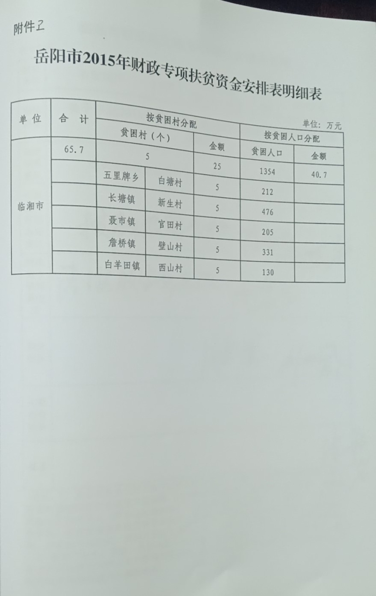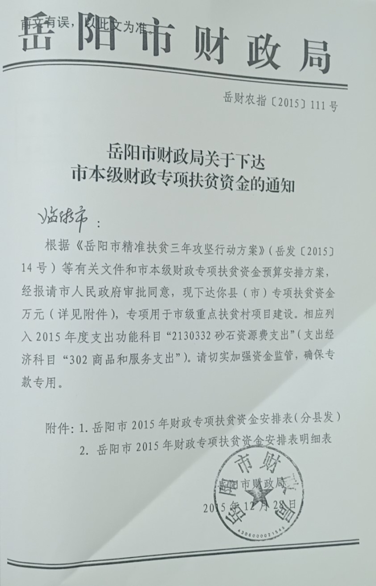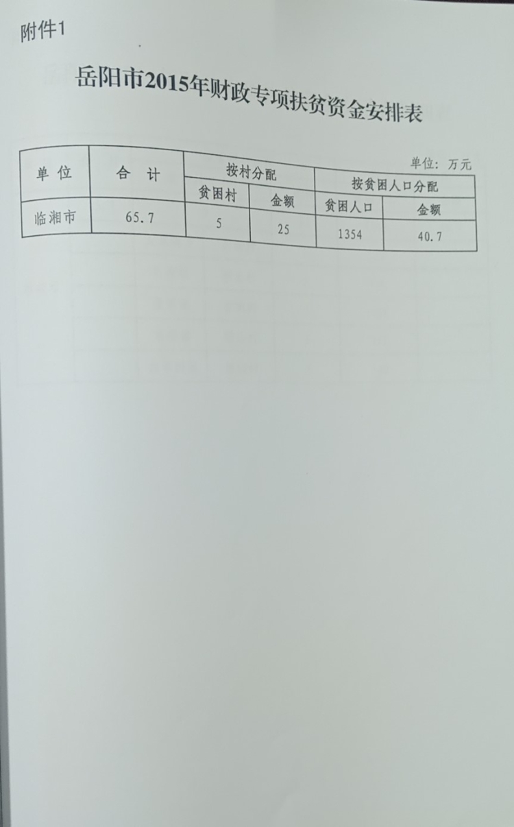 岳阳市财政局关于下达市本级财政专项扶贫资金的通知(岳财农指[2015]111号)