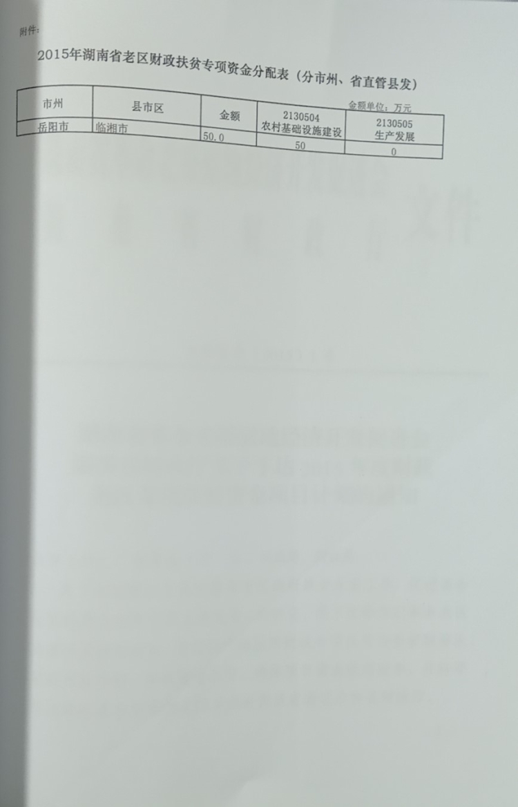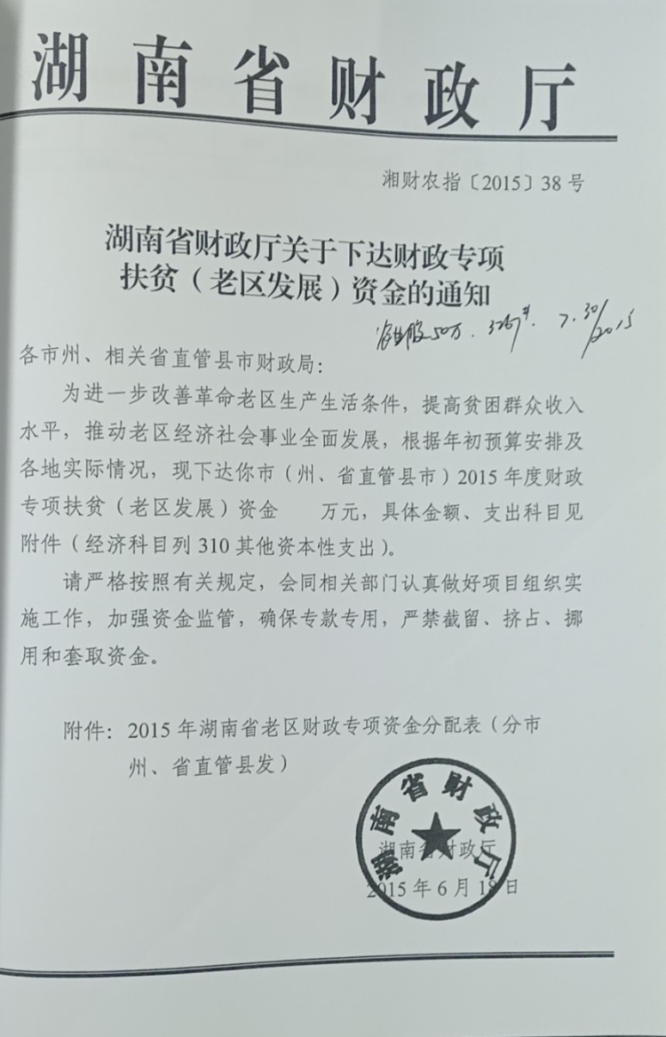 湖南省财政厅关于下达财政专项扶贫(老区发展)资金的通知