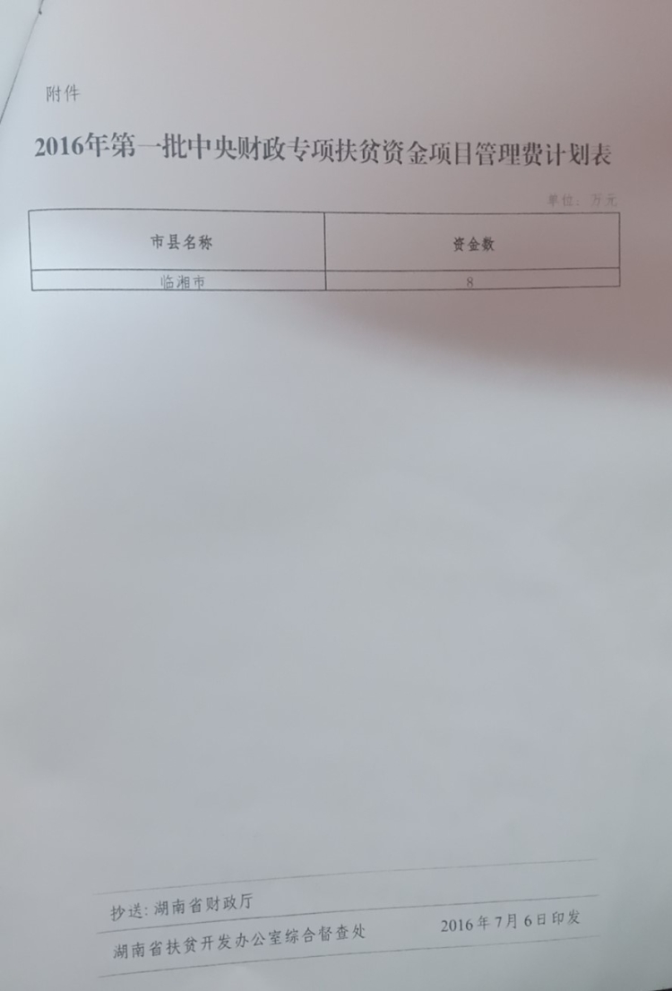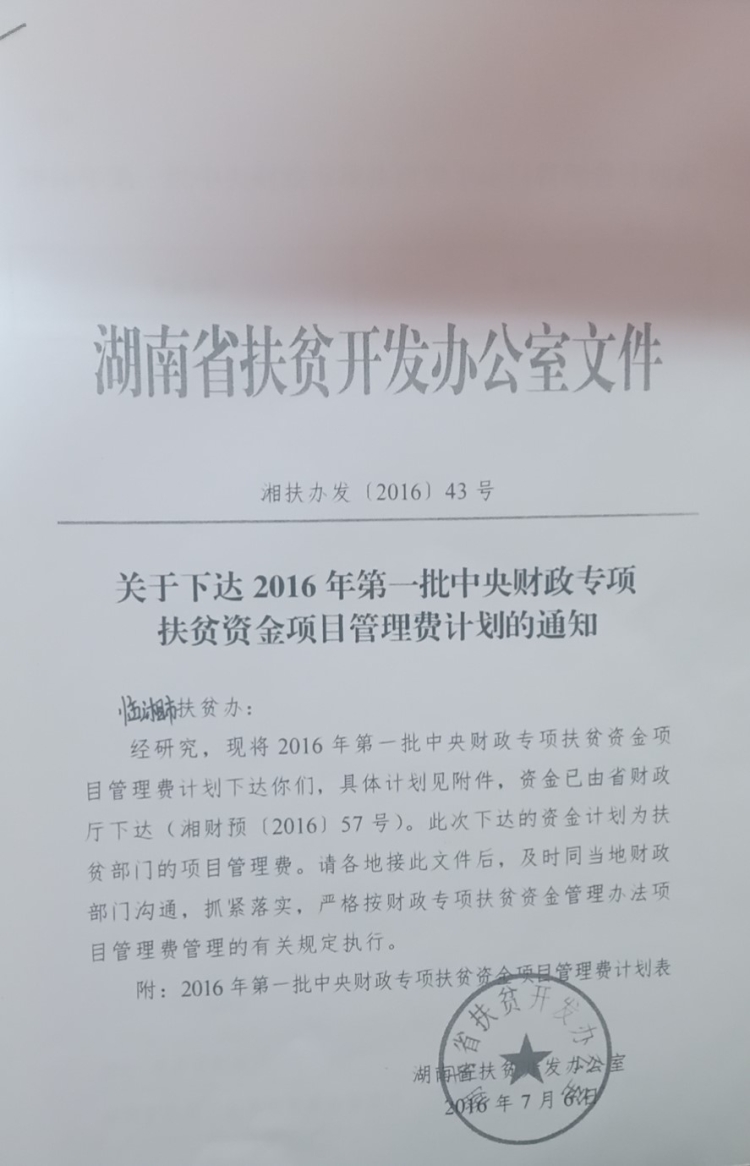 关于下达2016年第一批中央财政专项扶贫资金项目管理费计划的通知