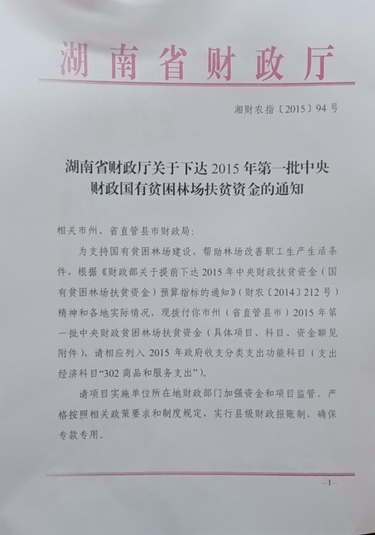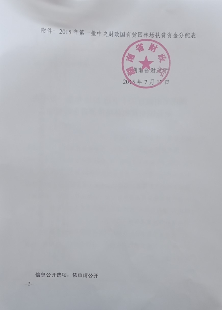 湖南省财政厅关于下达2015年第一批中央财政国有贫困林场扶贫资金的通知