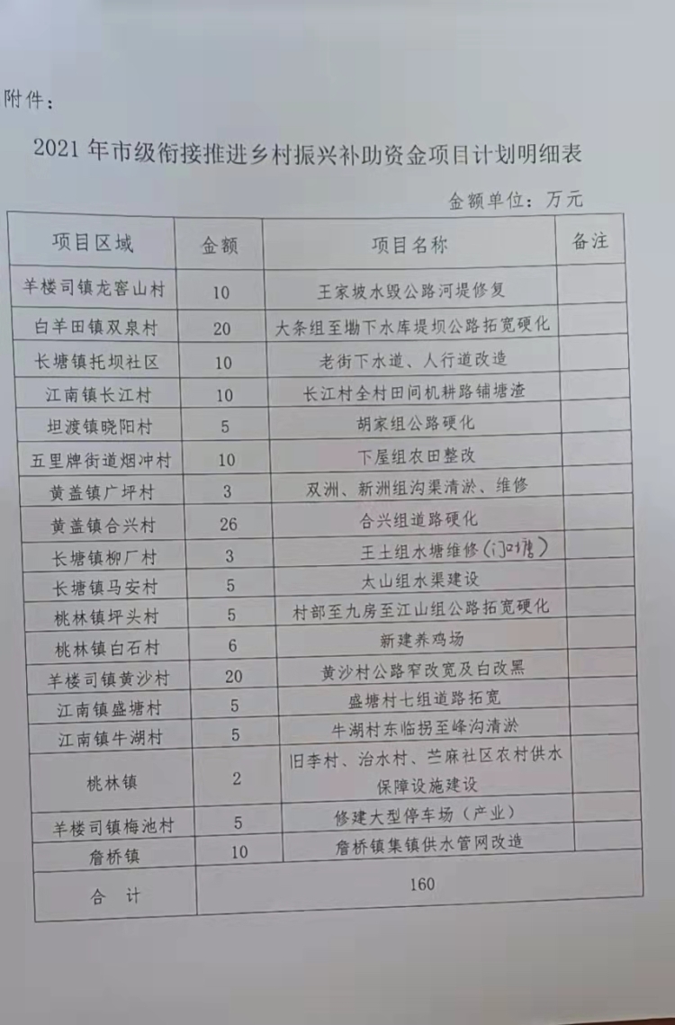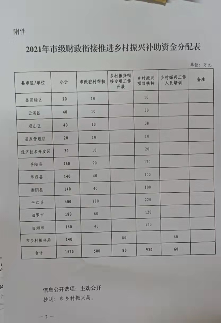 关于下达2021年岳阳市级衔接推进乡村振兴补助资金的通知
