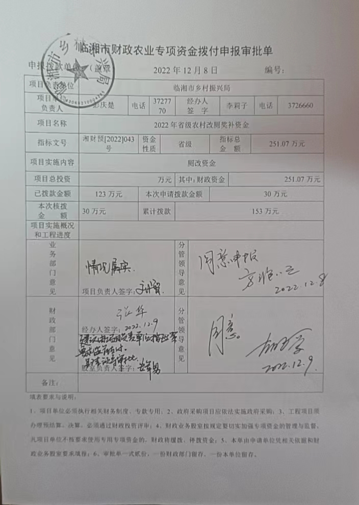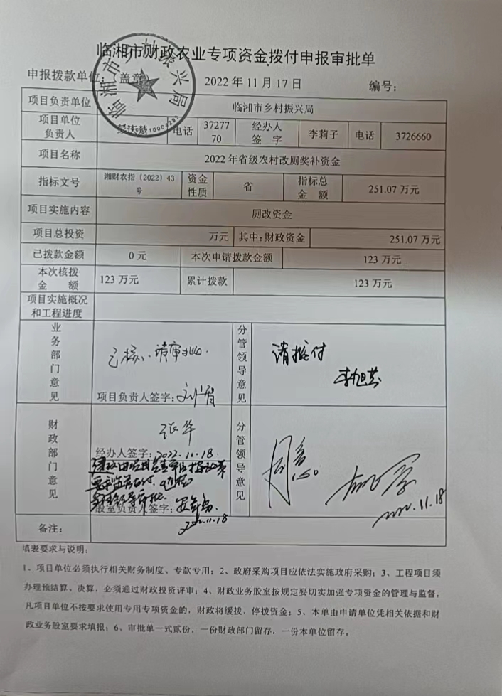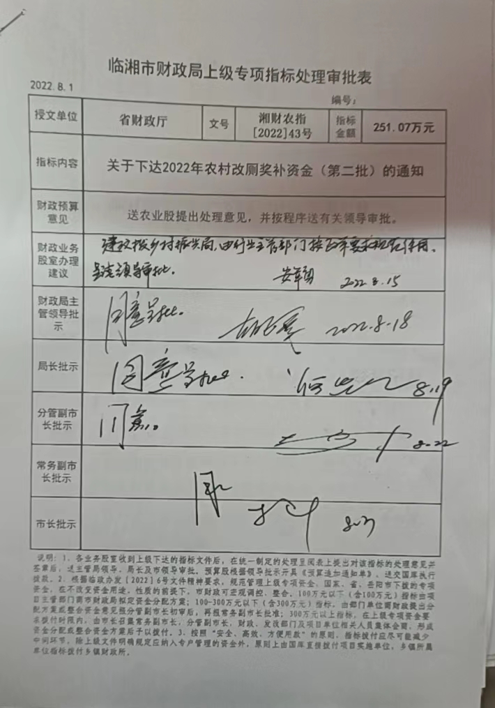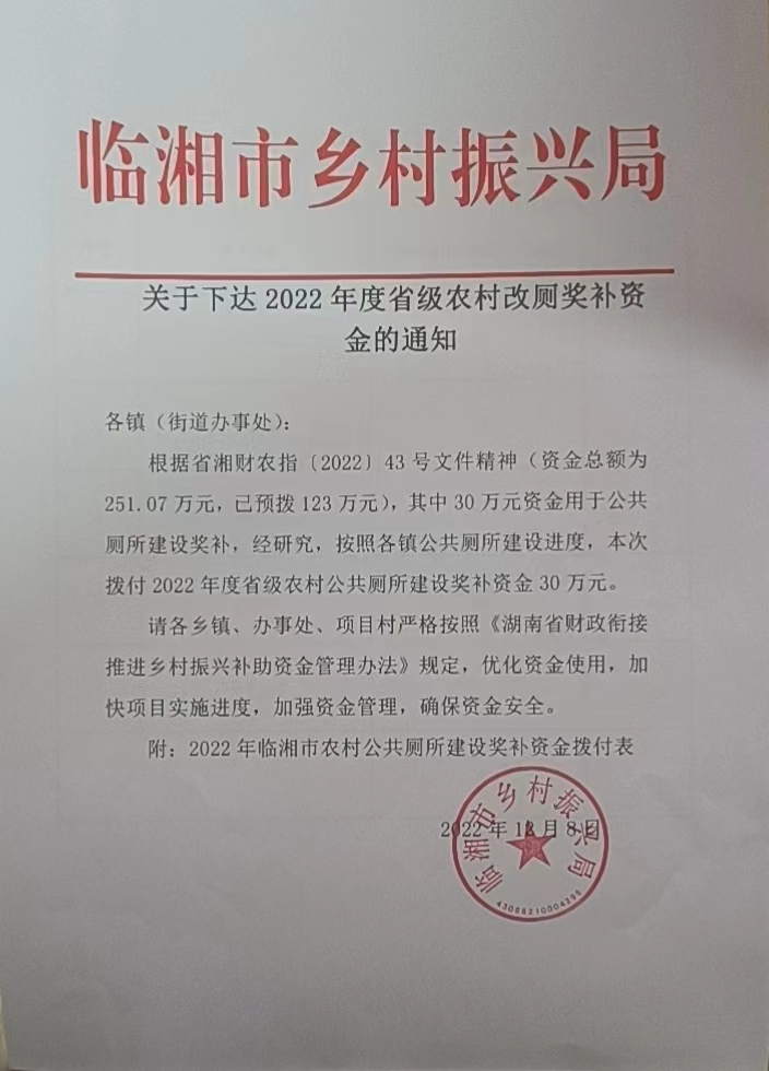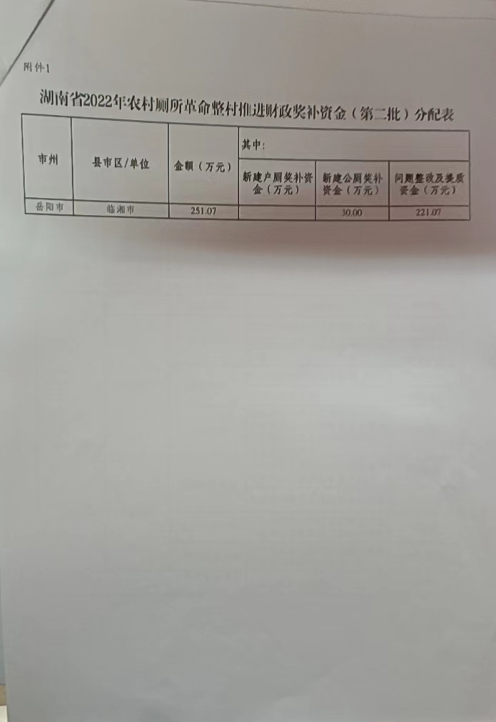 湖南省财政厅关于下达2022年农村改厕奖补资金(第二批)的通知(湘财农指[2022]43号)