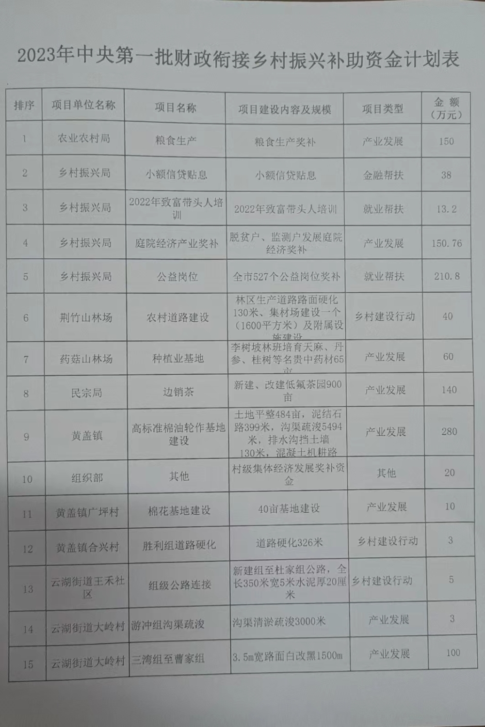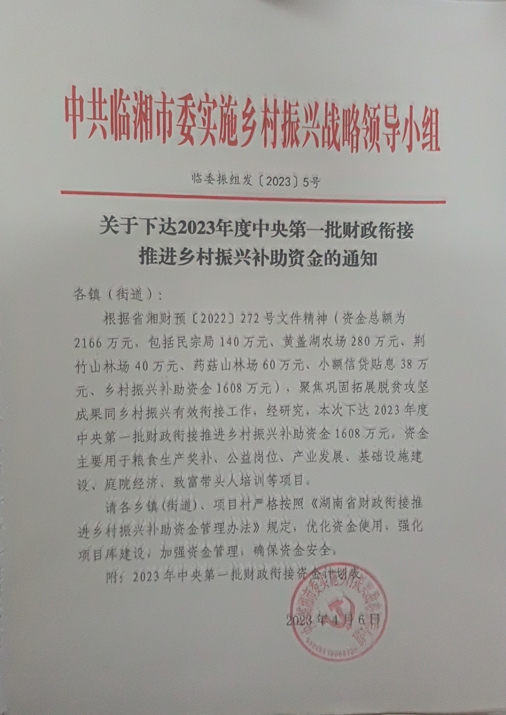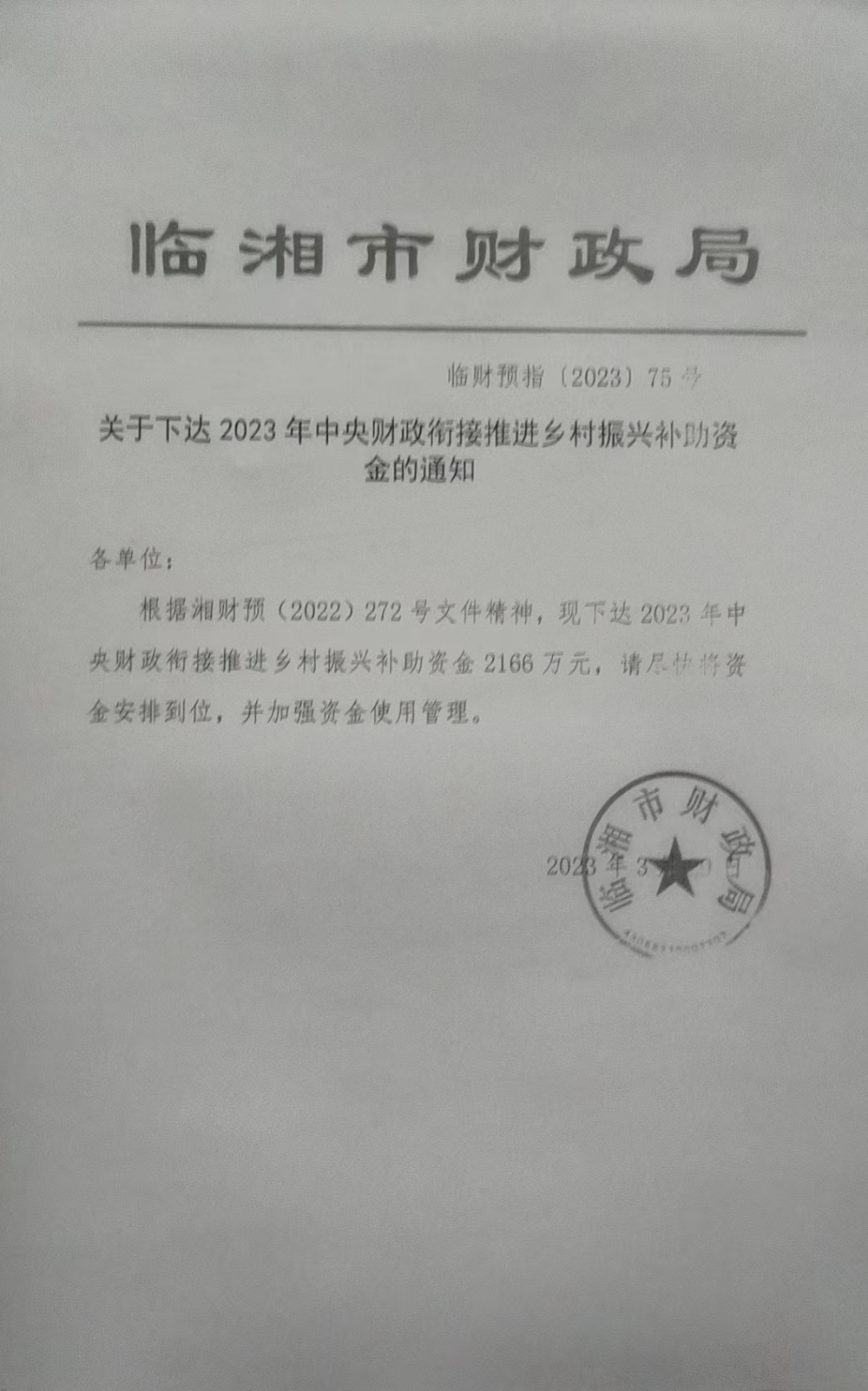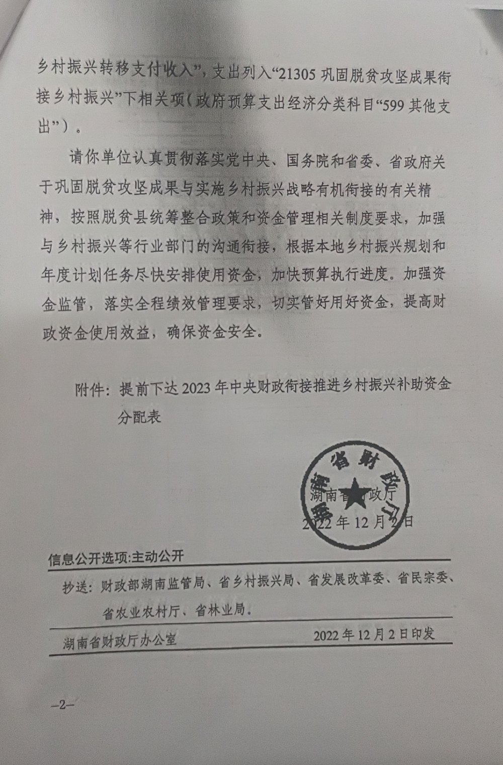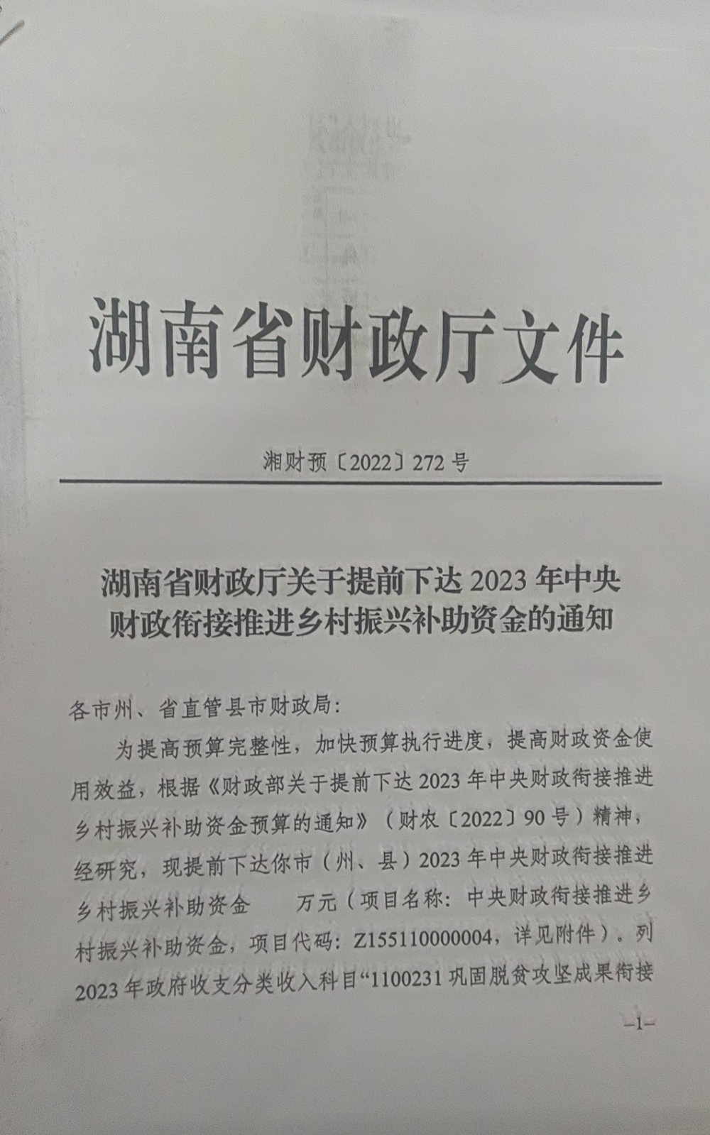 关于下达2023年度中央财政衔接推进乡村振兴补助资金的通知(湘财预[2022]272号)