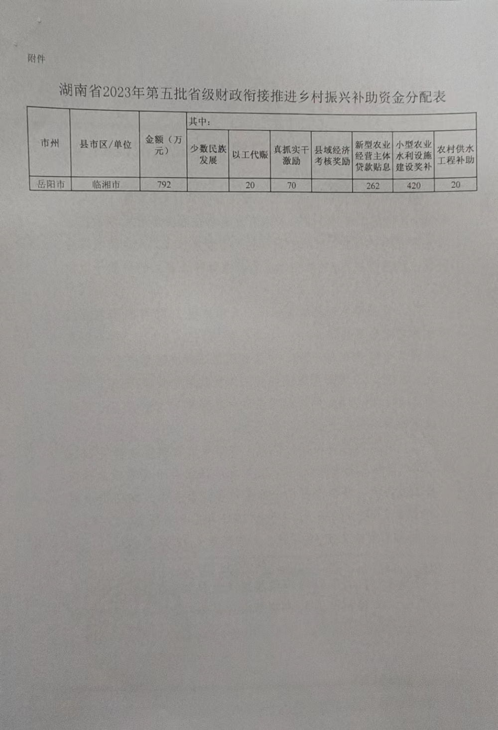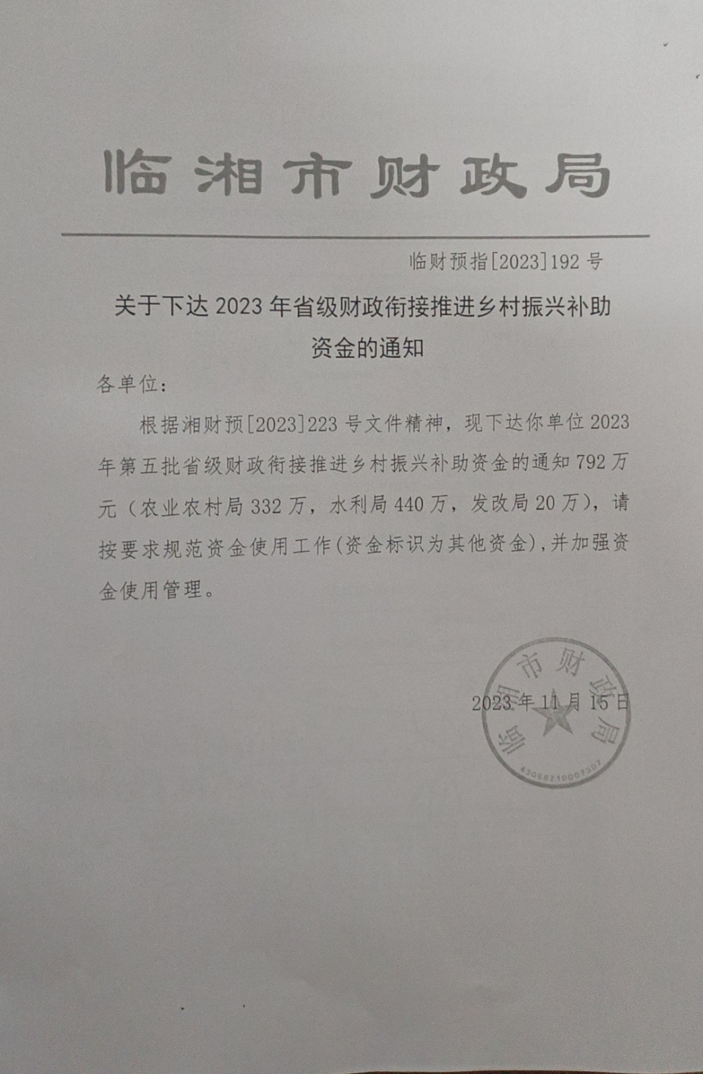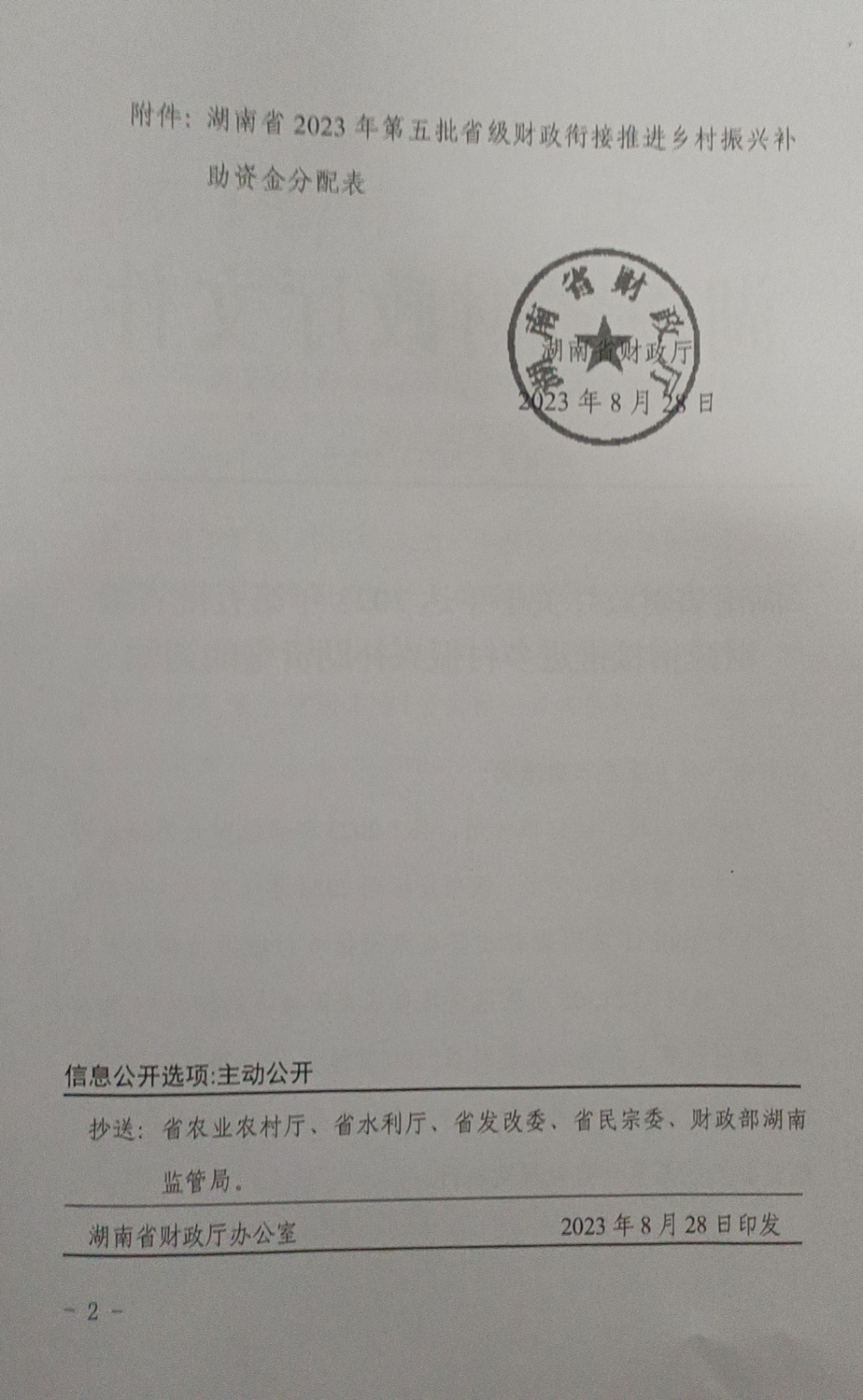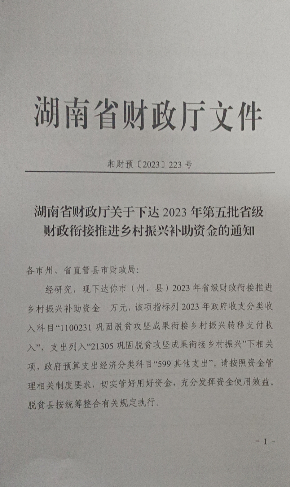 关于下达2023年省级财政衔接推进乡村振兴补助资金的通知(湘财预[2023]223号)