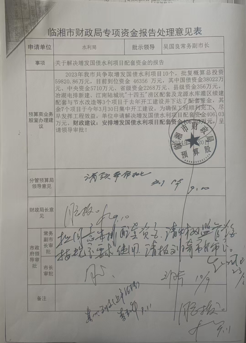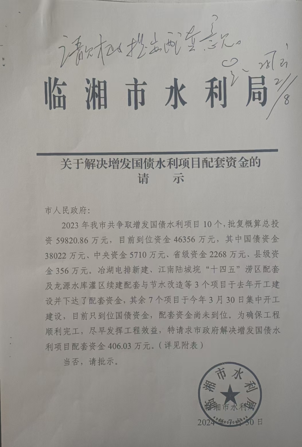 关于解决增发国债水利项目配套资金的报告(县级配套5)