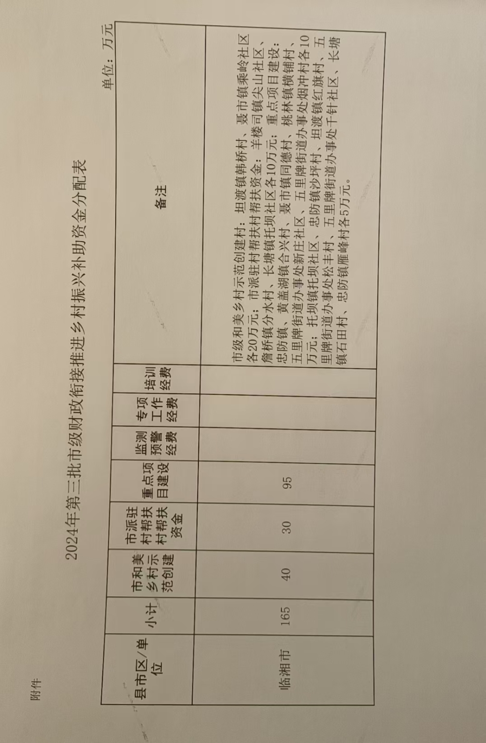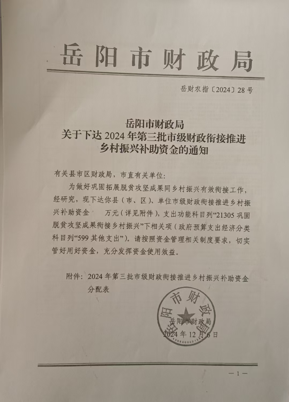 关于下达2024年度第三批市级财政衔接推进乡村振兴补助资金的通知