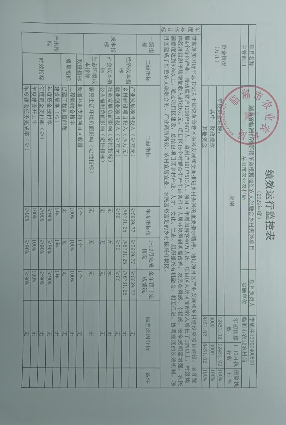 临湘市2024年湘鄂赣革命根据地红农文旅融合乡村振兴项目已经开工,现将绩效运行监控表进行公示。
