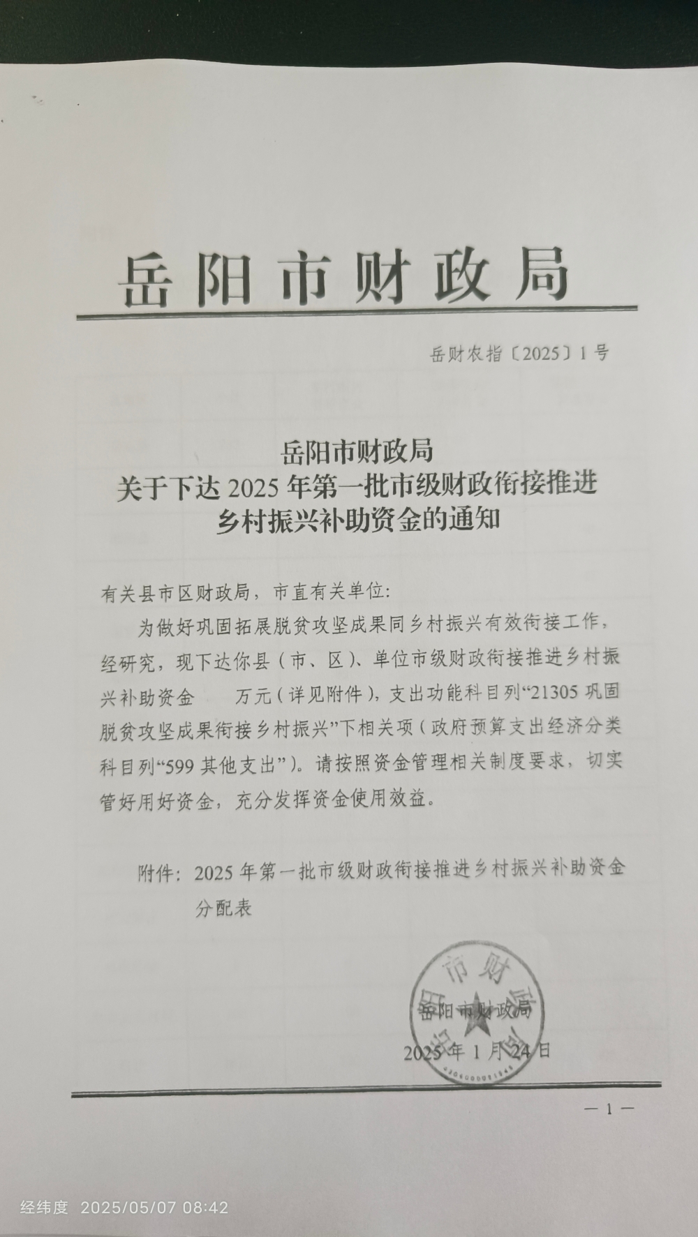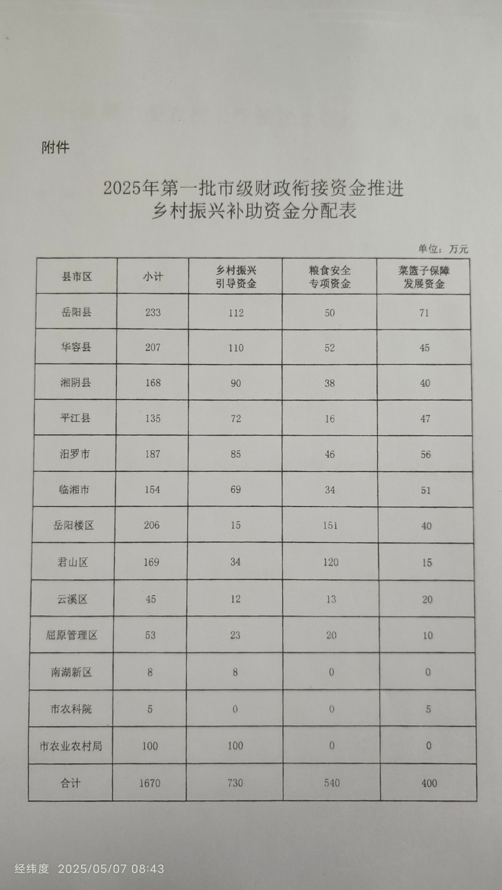 关于下达2025年第一批市级财政衔接推进乡村振兴补助资金的通知