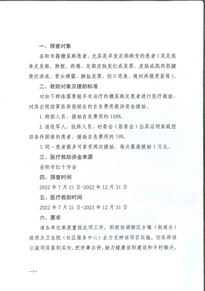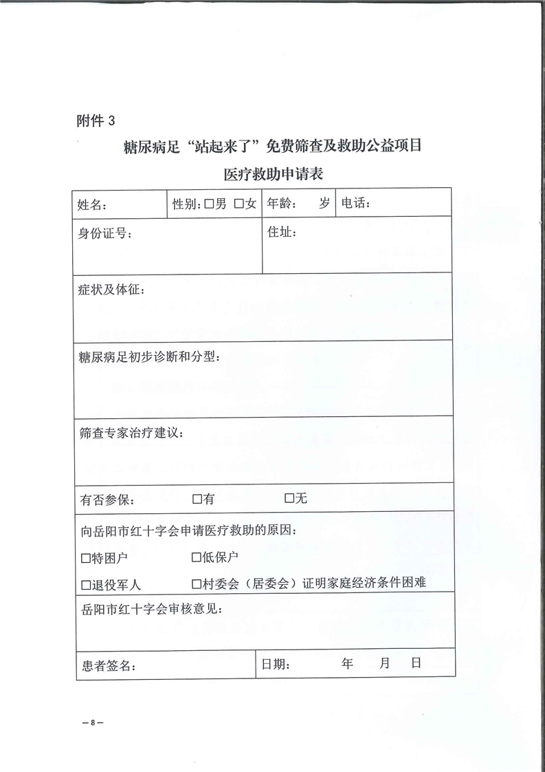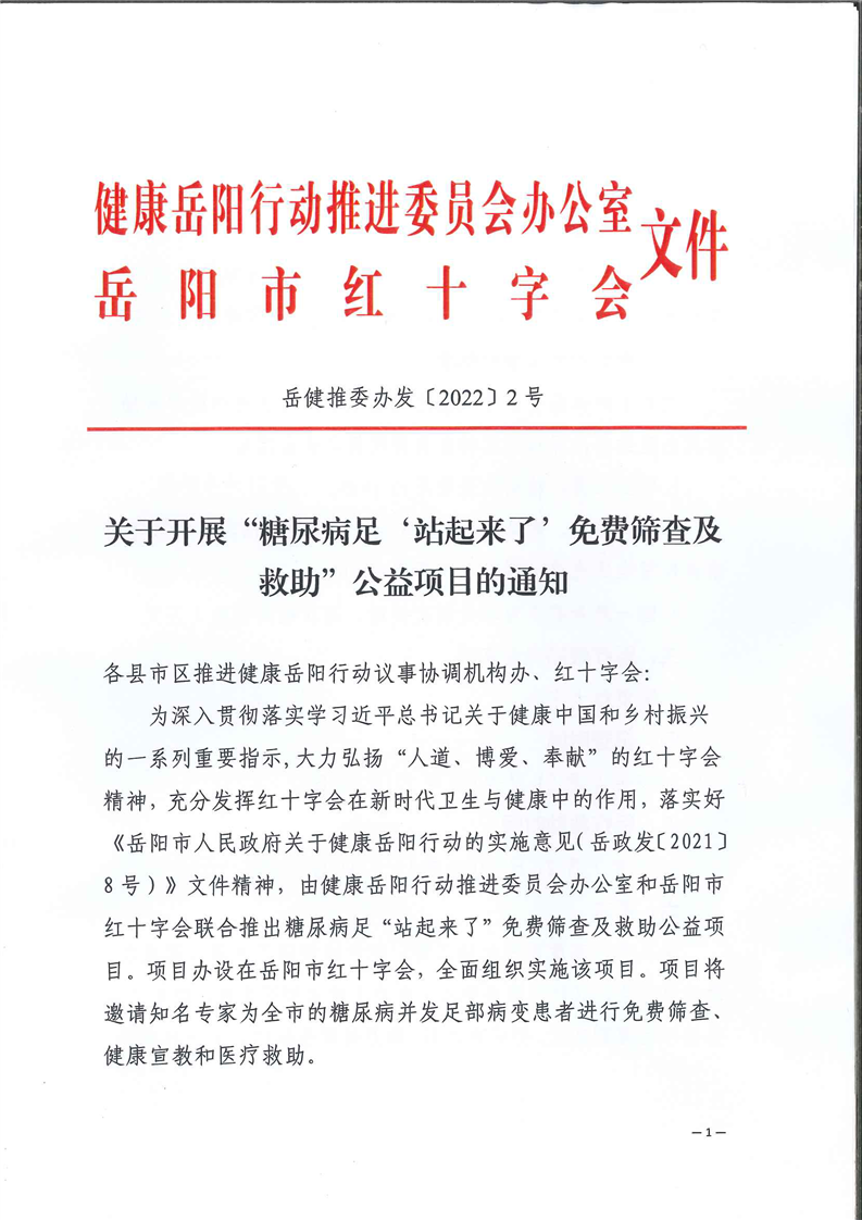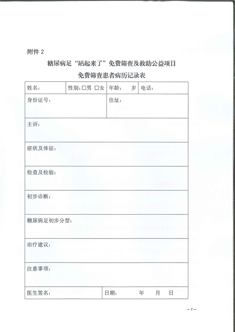 关于开展“糖尿病足‘站起来了’免费筛查及救助”公益项目的通知