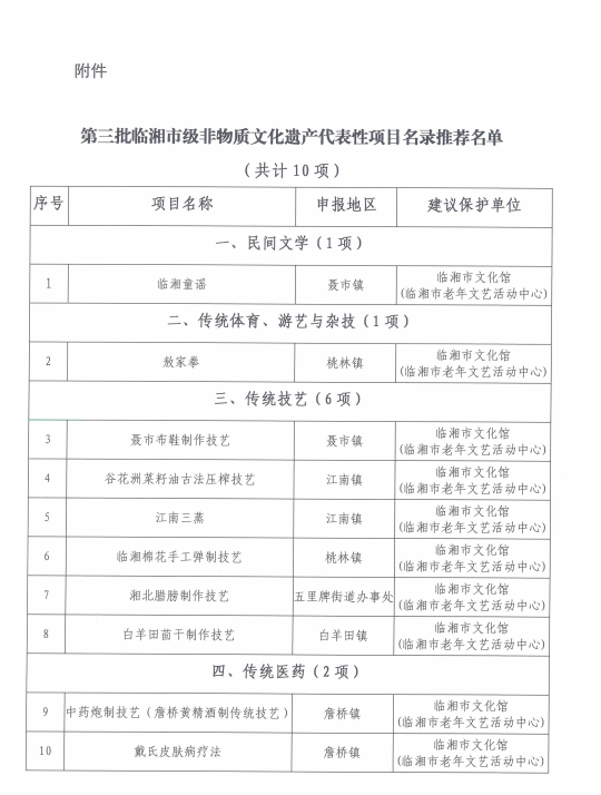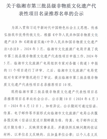 关于临湘市第三批县级非物质文化遗产代表性项目名录推荐名单的公示