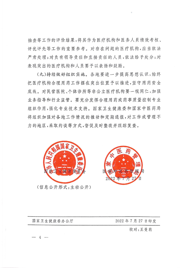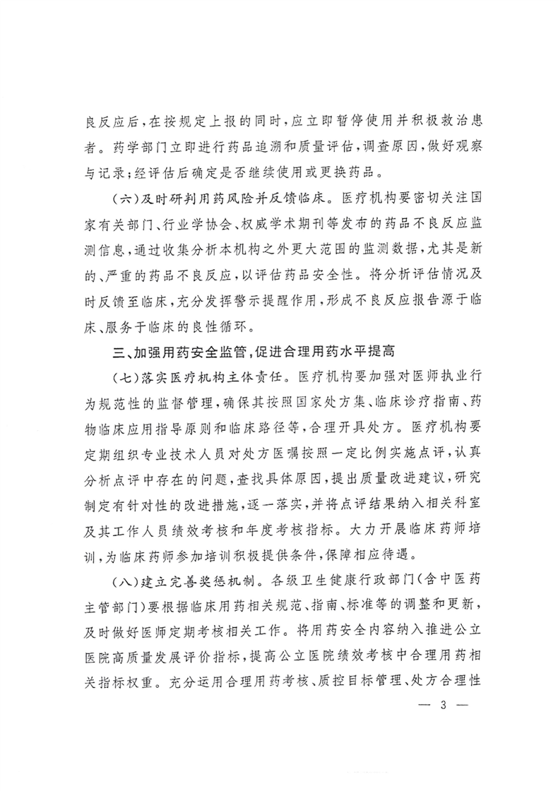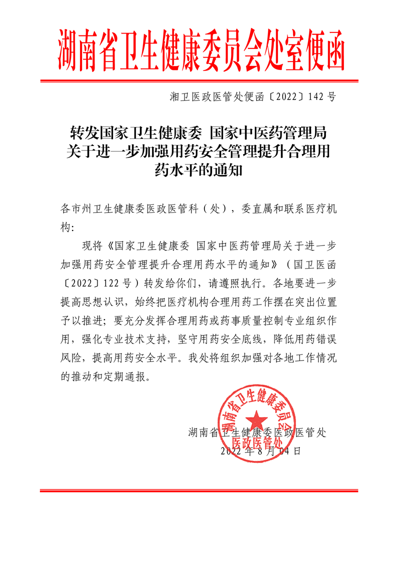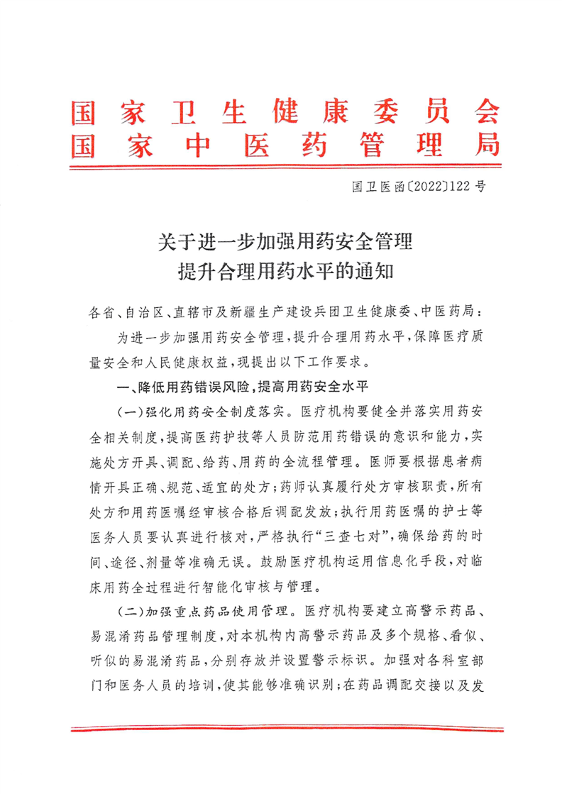 关于进一步加强用药安全管理提升合理用药水平的通知