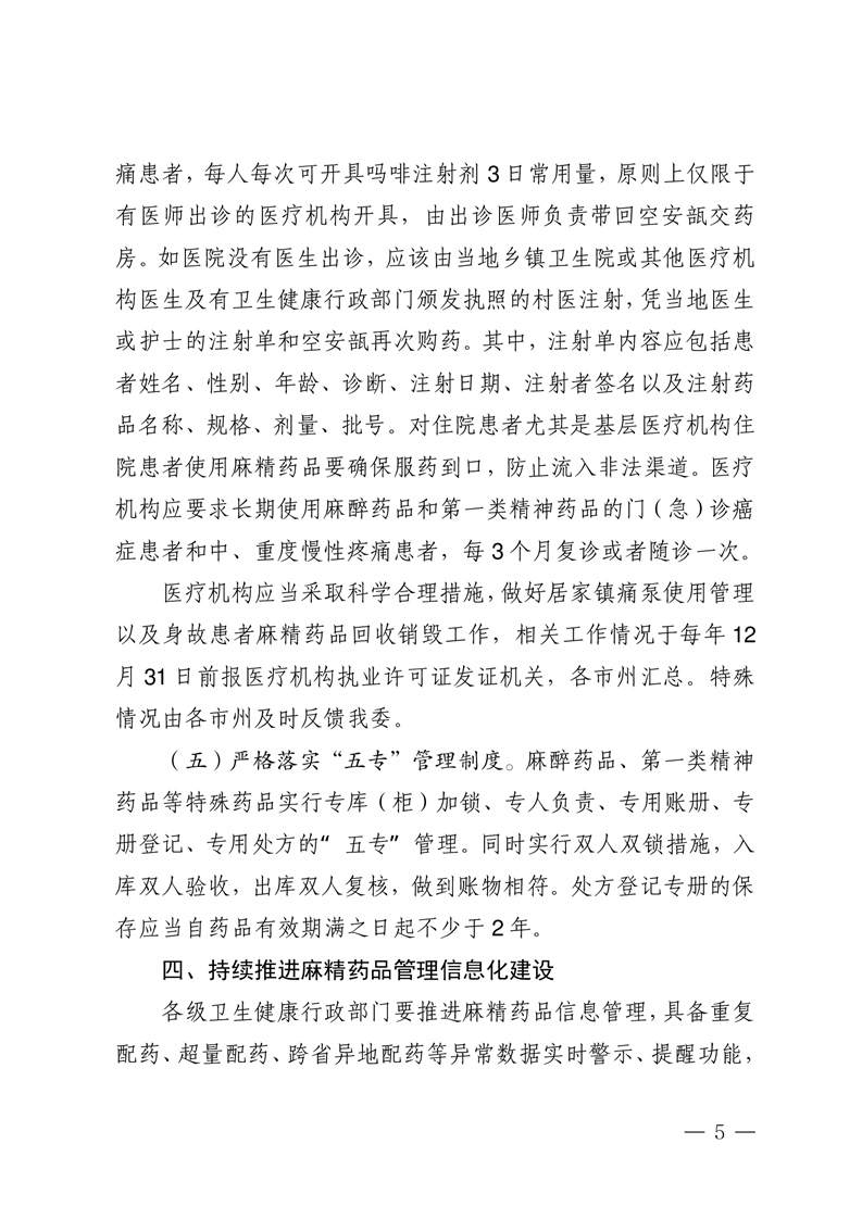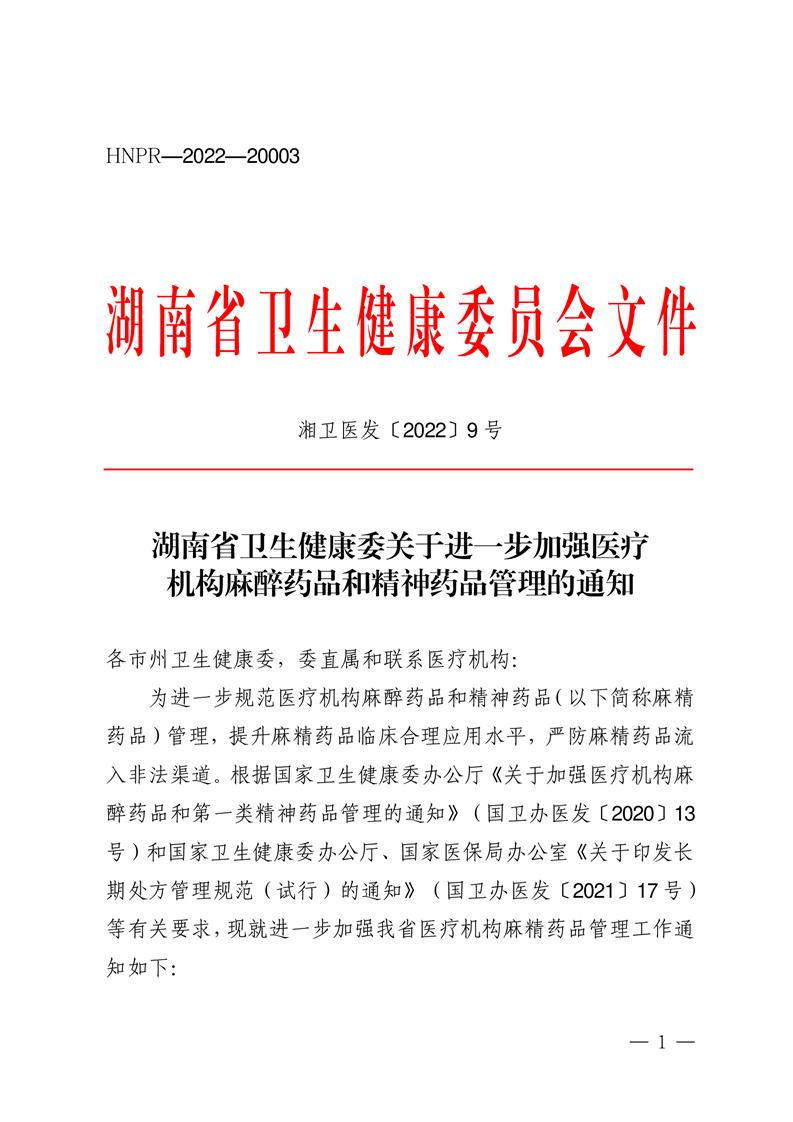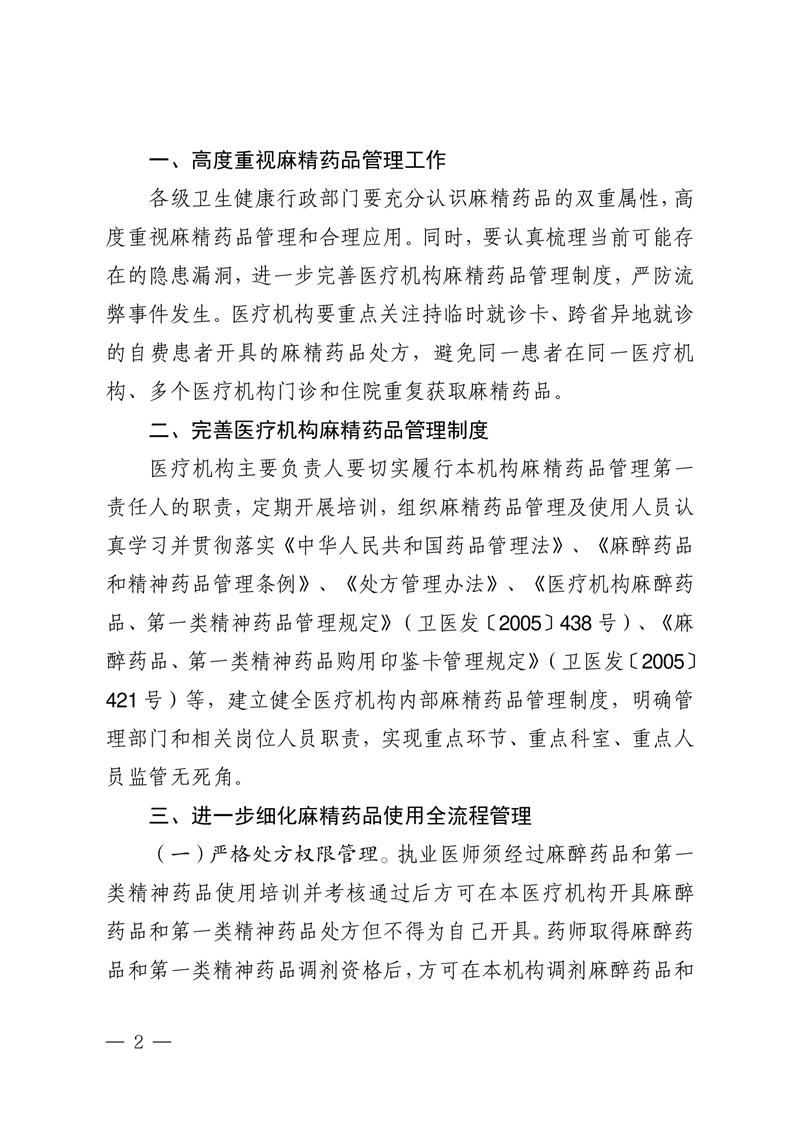 关于进一步加强医疗机构麻醉药品和精神药品管理的通知