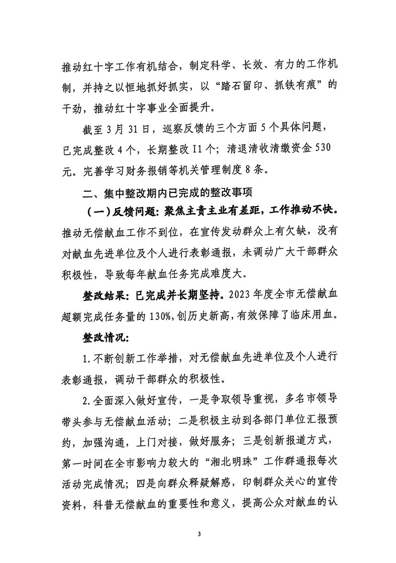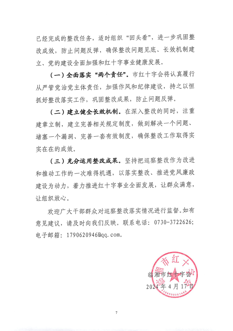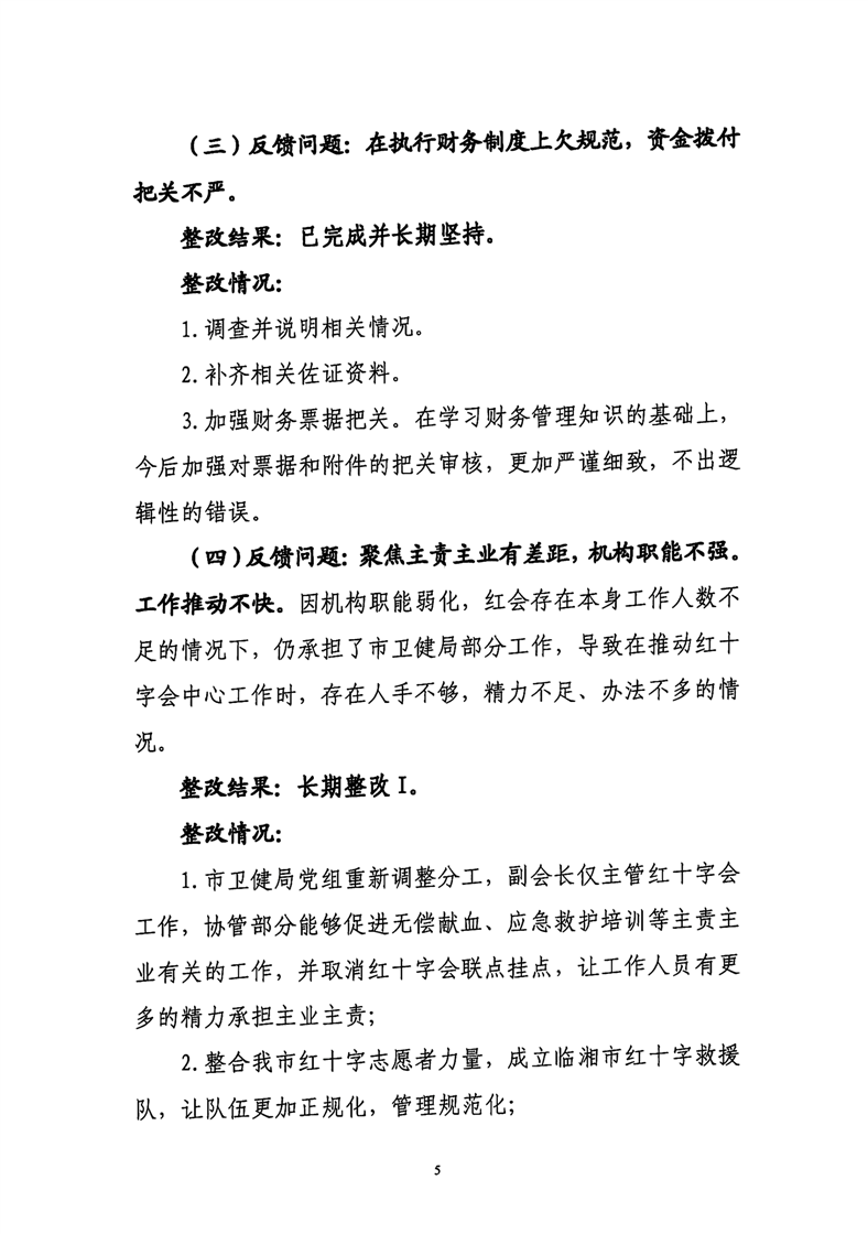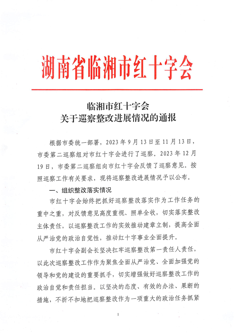 临湘市红十字会关于巡察整改进展情况公示