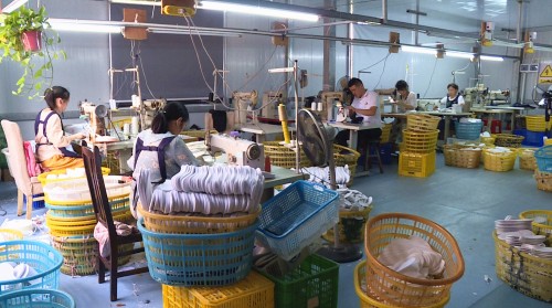 聂市镇古松鞋业有限公司员工胡小霞:“以前捕鱼要起早贪黑,又怕起大风,还担心收入不好。”