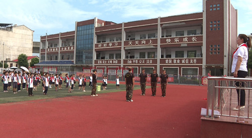 市长安寄宿制小学校长马丽华:我宣布,长安寄宿制小学2023年秋季自立自强、成长成才、励志军训正式开演。