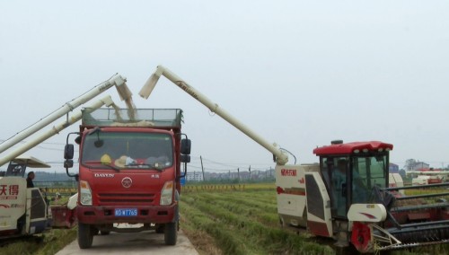 金秋时节,稻谷飘香。我市58万亩杂交水稻全面进入收割期,种粮大户们采用机械化作业加快收割进度,确保颗粒归仓,田间地头呈现一片繁忙的丰收景象。