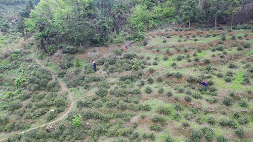 走进海拔1300米的白石茶园绿色无公害茶叶基地,只见连绵起伏的茶山绿意盎然,一垄垄茶树郁郁葱葱,焕发出勃勃生机。数十名茶农腰挎竹篓穿梭其中,随着指尖不断翻转舞动,一片片鲜嫩、饱满的嫩芽被轻轻采摘并放入竹篓里,茶农们脸上洋溢着丰收的喜悦。