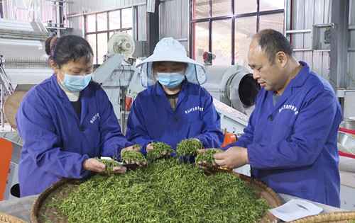 山上采茶忙,山下制茶香。在苎麻社区集体经济合作社和治水村陡岭洞茶叶合作社的制茶加工车间内机器轰鸣,茶农们采摘的新鲜茶叶在这里经过制茶工人摊青、杀青、揉捻、烘干等一系列工序后,茶叶清香扑鼻。
