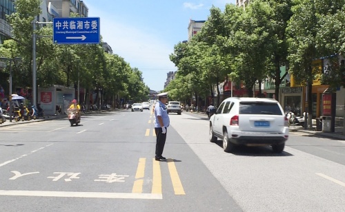 市公安交警大队一中队辅警沈拯文:我们交警每天工作有十一二个小时,大概像现在天气这么炎热,每两三个小时就要换一身衣服,不过为了我们临湘交通畅通,这些也值了。