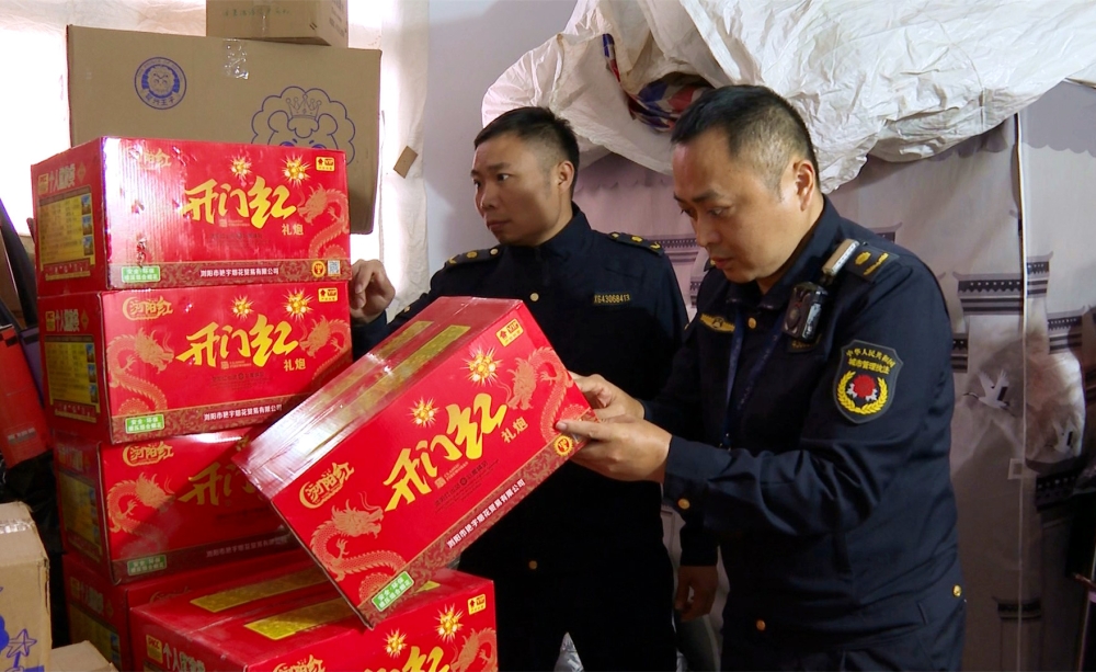 10月14日,市烟花爆竹打非办、市公安局、市应急管理局、市城管局、市市场监管局、市交通运输局、云湖街道等部门联合在南太路区域开展烟花爆竹“打非治违”专项整治突击行动,现场在一民房内查获大量非法储存烟花爆竹。