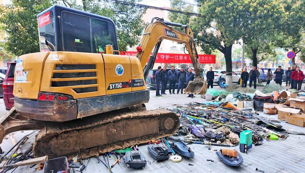 行动中,工作人员将收缴的禁用渔具整齐堆放、清点核对后,采用拆解、粉碎、无害化处理等方式进行集中销毁,确保其完全丧失使用功能,杜绝再次流入渔具市场或禁捕水域。