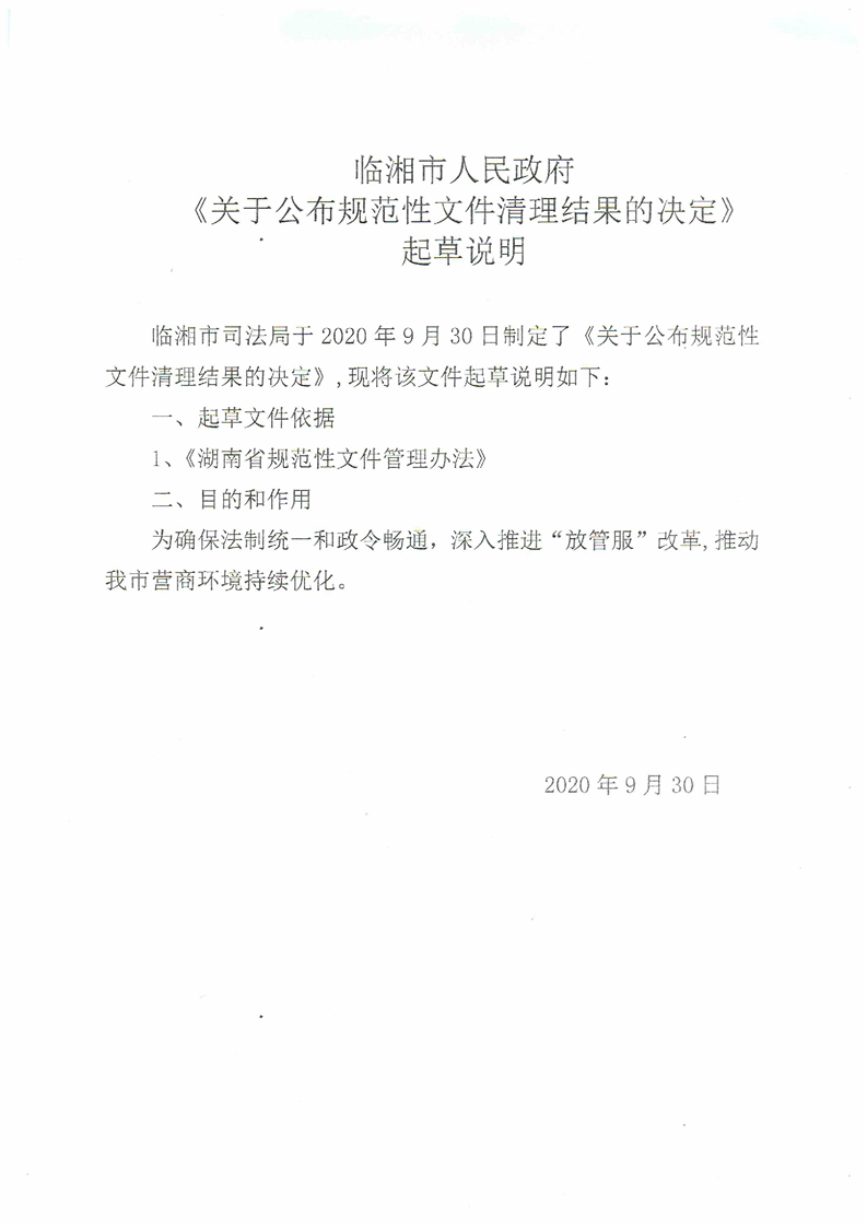 《关于公布规范性文件清理结果的决定》起草说明