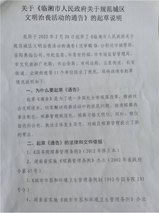 关于《临湘市人民政府关于规范城区文明治丧活动的通告》的起草说明