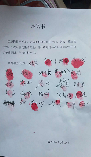 收到您的首次来信后,詹桥镇泰和社区已撤除该卡点,但因疫情依然严重,为防止村组之间的串门、聚会、聚餐等行为,经泰和村岭背组居民集体商量,自行决定将与岳阳县蒙城村的组级公路隔断,不与外村来往。