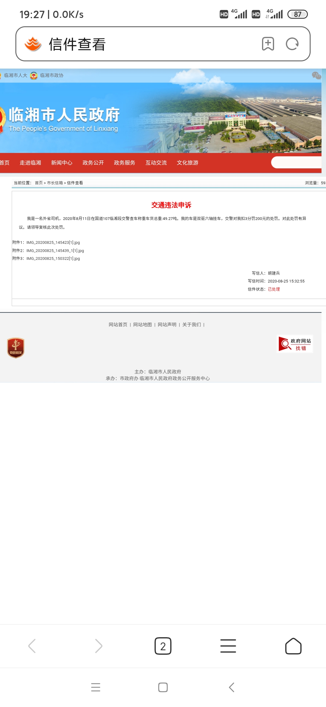 我在2020年8月11日,驾驶鄂H3A958,车货总重:49.27吨。在107国道临湘段交警对我处以罚200元扣3分的处罚。对此处罚有议。8月25日在网上申请复议,第一次回复不满意。就看不到回复了。想知道我的车核载多少吨,实载多少吨。交法怎么认定超载的。 附件1:Screenshot_2020-09-12-19-27-59-682_com.android.browser.jpg |