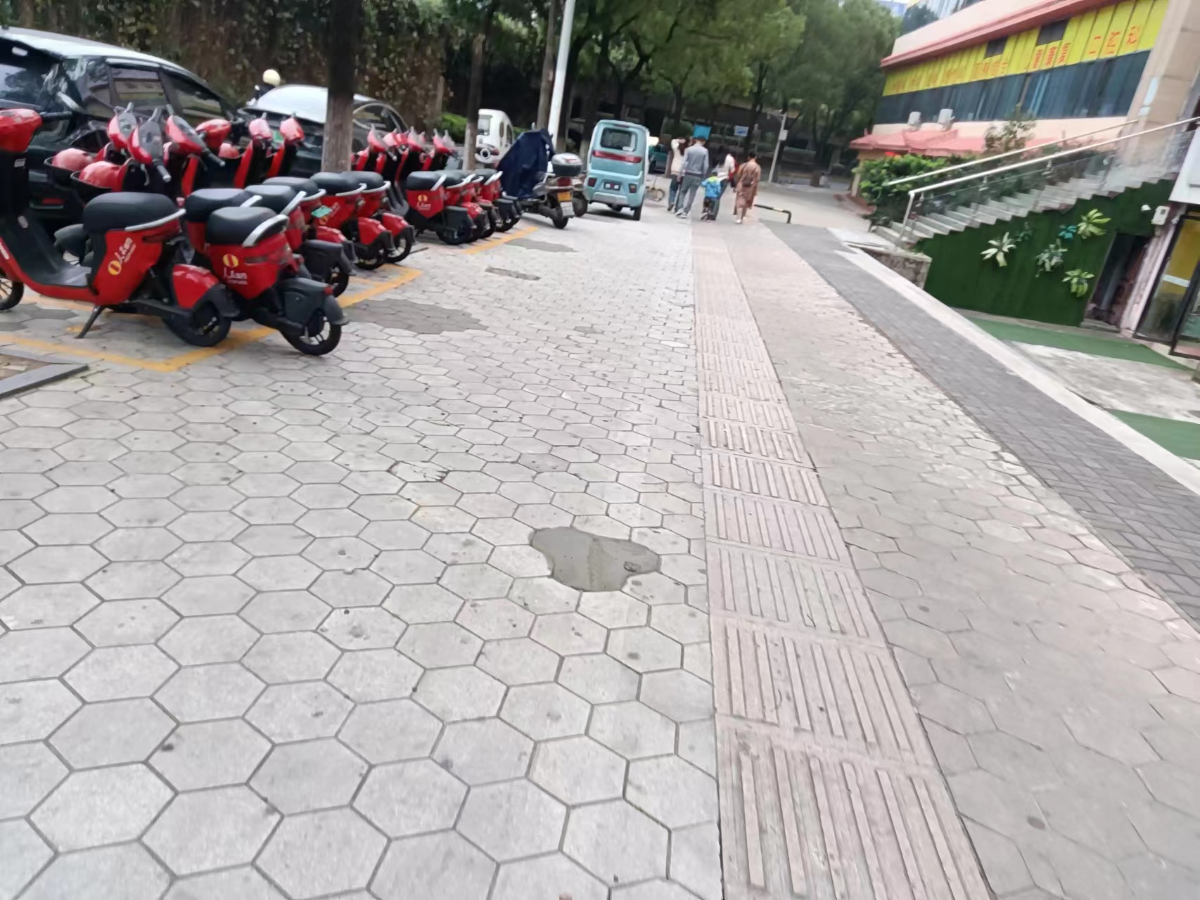 岳阳市很多条人行道上铺了五边形瓷片,但都已松动,下雨天,瓷片下积水,过往行人踩踏,经常溅水,弄湿弄脏鞋子裤子,严重影响市民出行。希望路政部门尽快全面检修固定瓷片,补齐缺损瓷片。