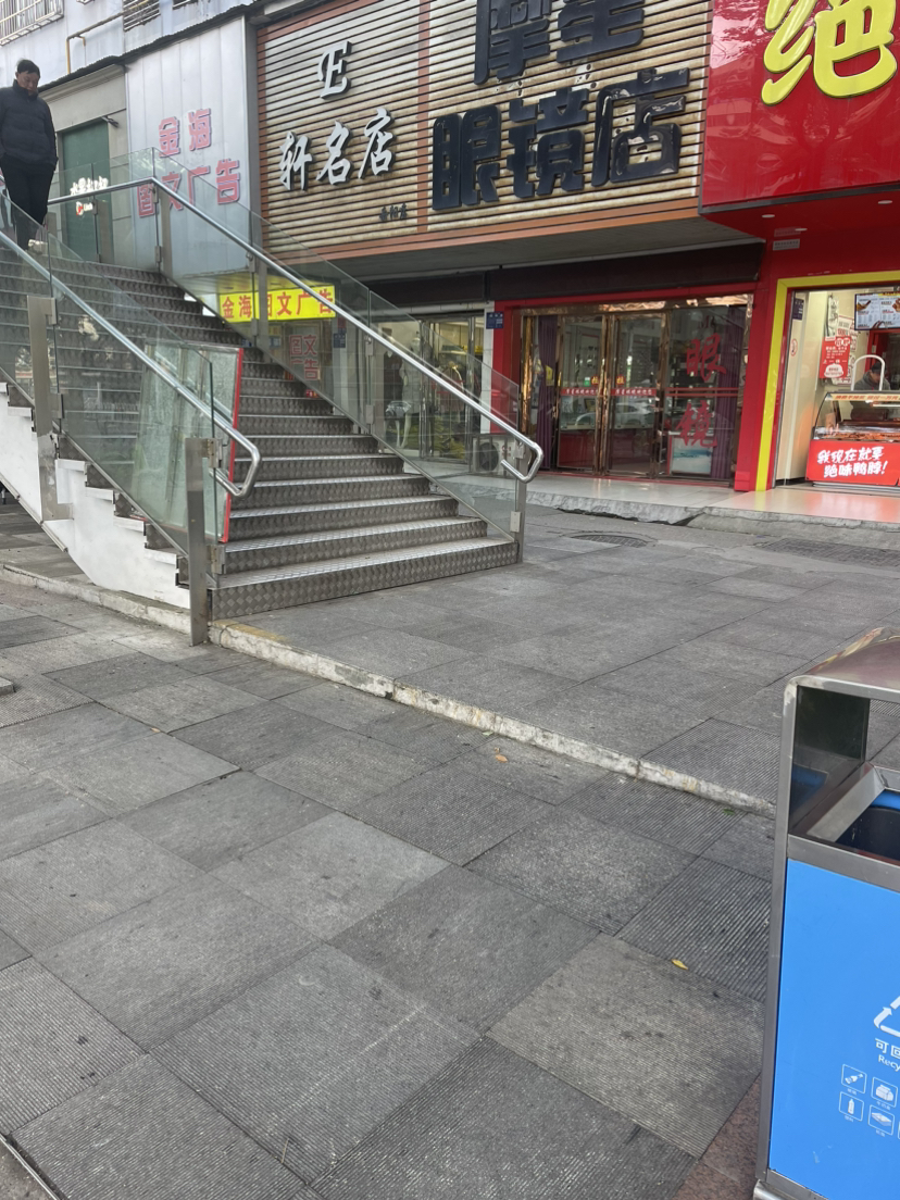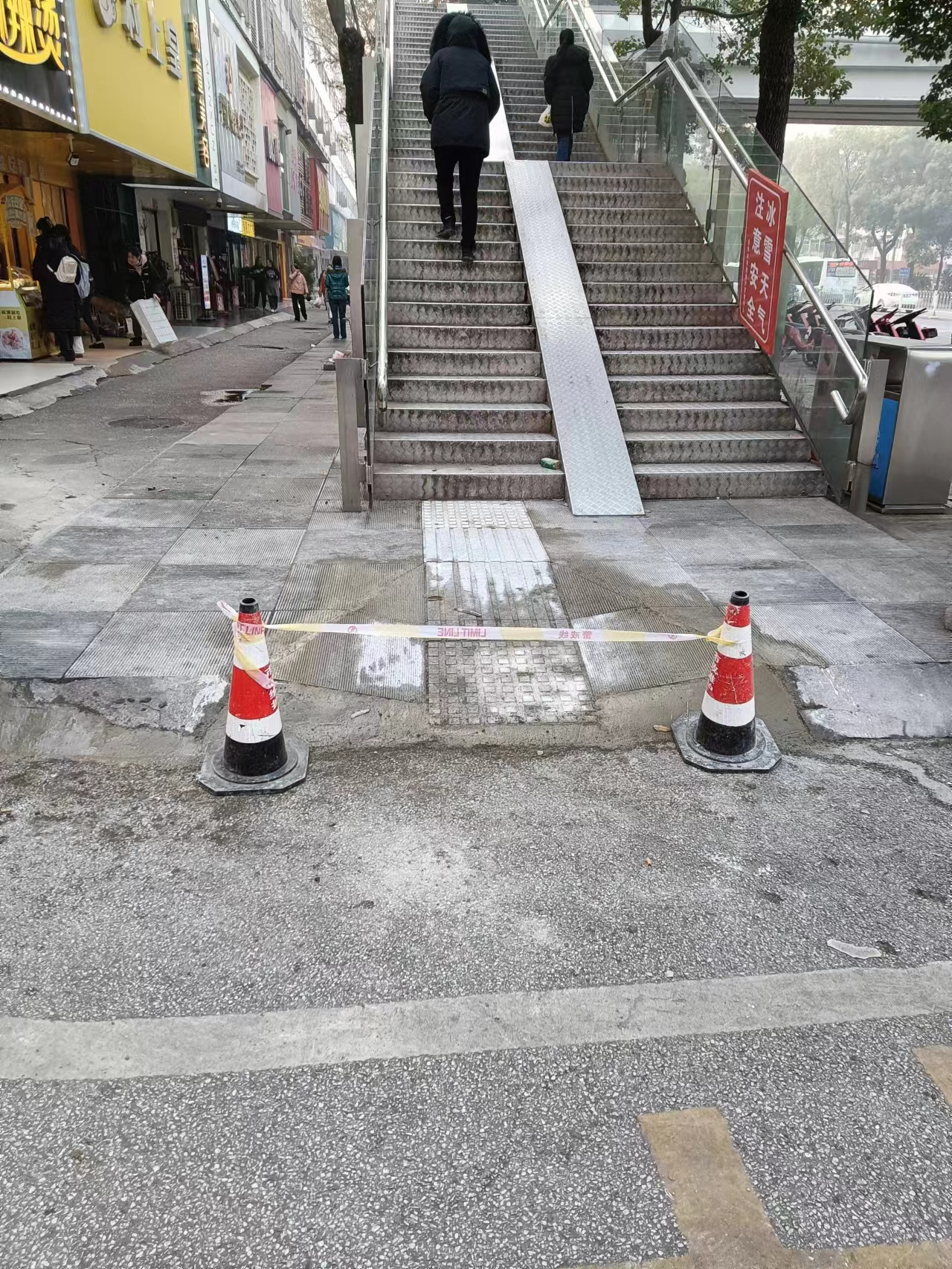 因此建议:1、天桥台阶出口应按正常台阶的宽度和高度进行整改,取消平台。2、及时设置警示标志。