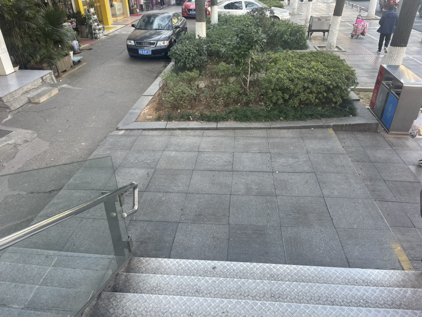 经现场核实,花板桥过街天桥踏步处存在一平台,为减少安全隐患,方便行人和非机动车辆通行,我局属市市政维护管理中心在人行天桥双向踏步处设立三面坡,改造于2023年12月28日完成。
