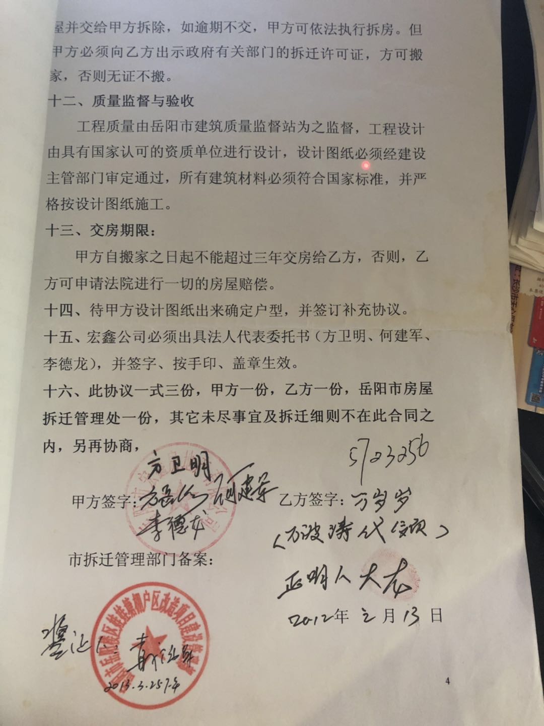 | 内容: | 尊敬的局长大人及部门工作人员 你们好!我是原岳阳市楼区东井岭小区六层楼业主,在2012年11月15日,岳阳市楼区征收安置工作局对我们下发了棚户区改造通知。由岳阳宏鑫房地产有限公司进行拆迁改造,并签订了拆旧还建合同。 合同上明确表明了宏鑫房地产有限公司自交房之日起15个月内为还建业主负责并承担两证办理费用。我于2017年2月向其支付了办证费但时至今日已一年有于,从未见得房产证半点影子,而且每每联系开发商总是一句正在办理草草了事。 出于担心我在今年3月去往房产局查询,得知我名下并未有关于宏鑫的房产信息,显示开发商并未配合办理相关网签,合格总证也没办理,房产证更是遥遥无期了。 开发商此做法明显有悖法律,苦于自身势单力薄,求助无门。只能求助政府,希望政府能给普通公民的我一个满意的答复。 我的诉求:宏鑫房地产有限公司依法按规为我办理网签、合格证房产证。不是口头承诺,落实行动上。违约期限按规定进行赔偿。 |