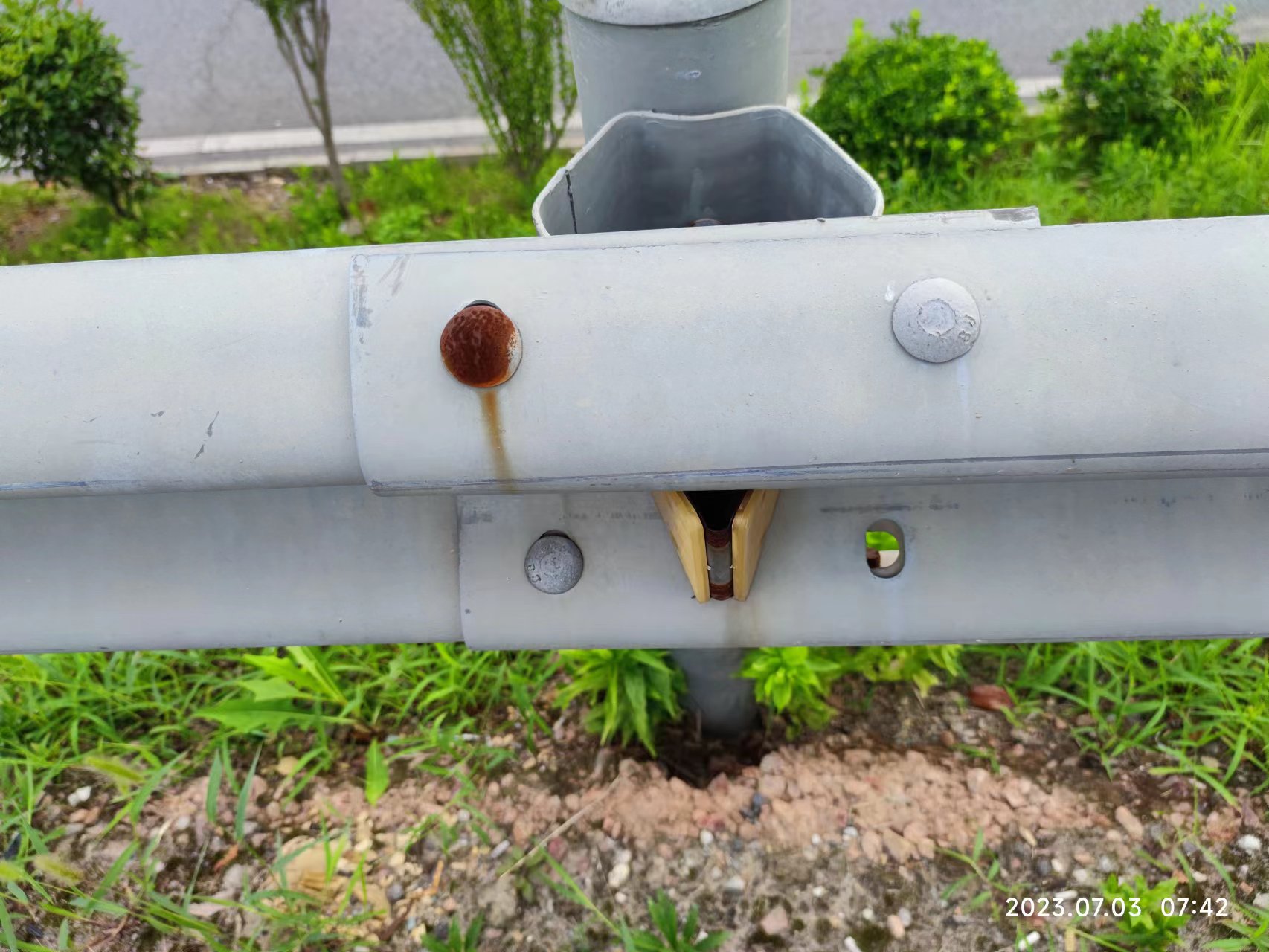 | 回复内容: | 热心市民: 您好!您的来信《皇菇塘立交桥东往北辅道护栏螺钉缺失》已收悉,现就有关情况回复如下: 我局下属市政维护管理中心已于7月17日安排施工人员处理完成。 感谢您对城市管理工作的关心和监督,欢迎多提宝贵意见。 附件:现场照片 岳阳市城市管理和综合执法局办公室 2023年7月18日 附件: