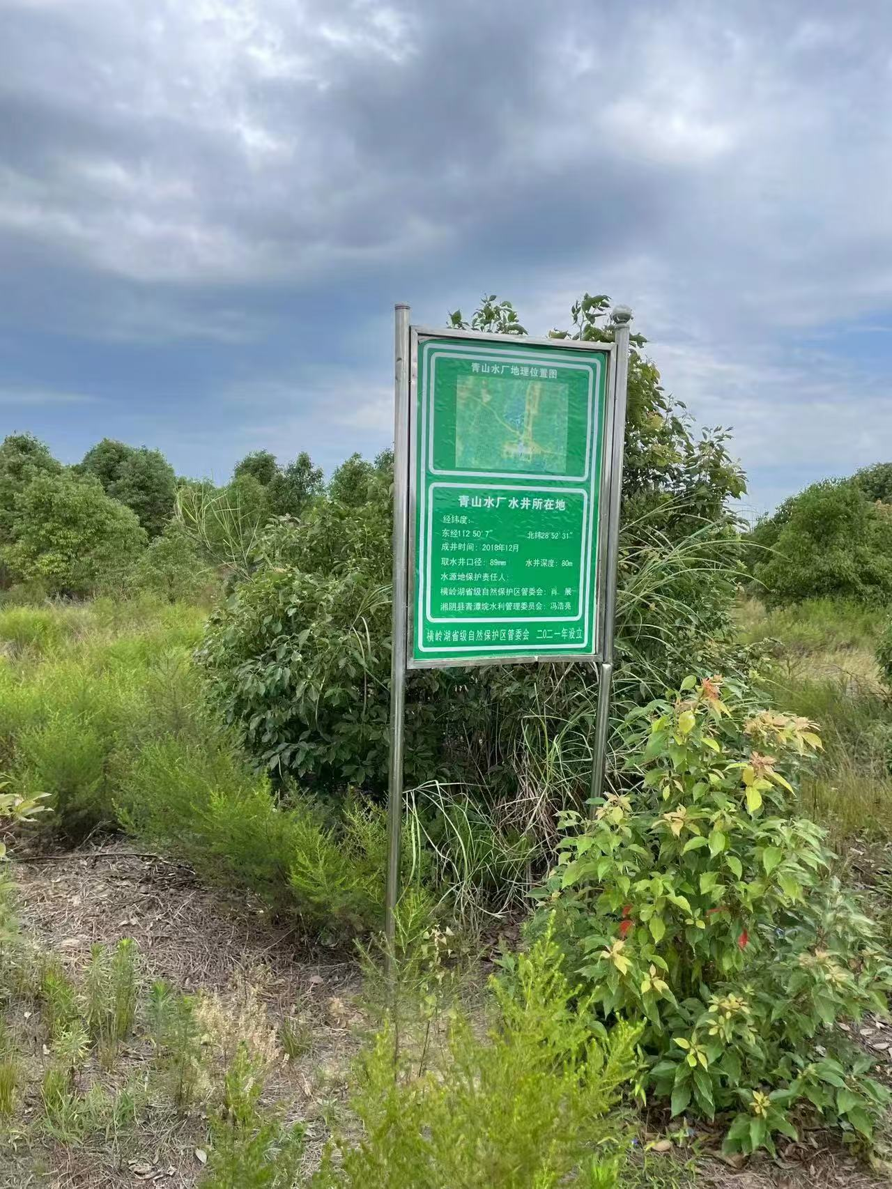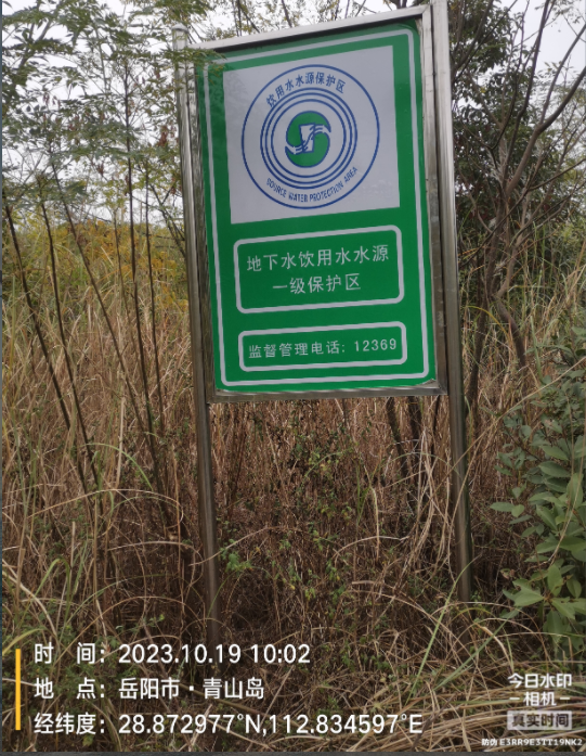 青山岛水厂名为青潭水厂,位于湘阴县青潭垸青草湖村双龙组,水井地所在位置为东经112°50′7″,北纬28°52′31″。饮用水源保护区位置为28.872977°N,112.834597°E,保护区范围已取水井为中心,半径30米的圆形区域。