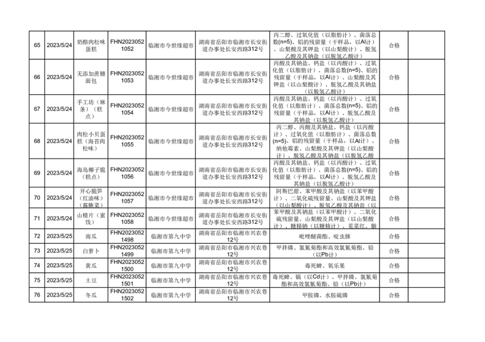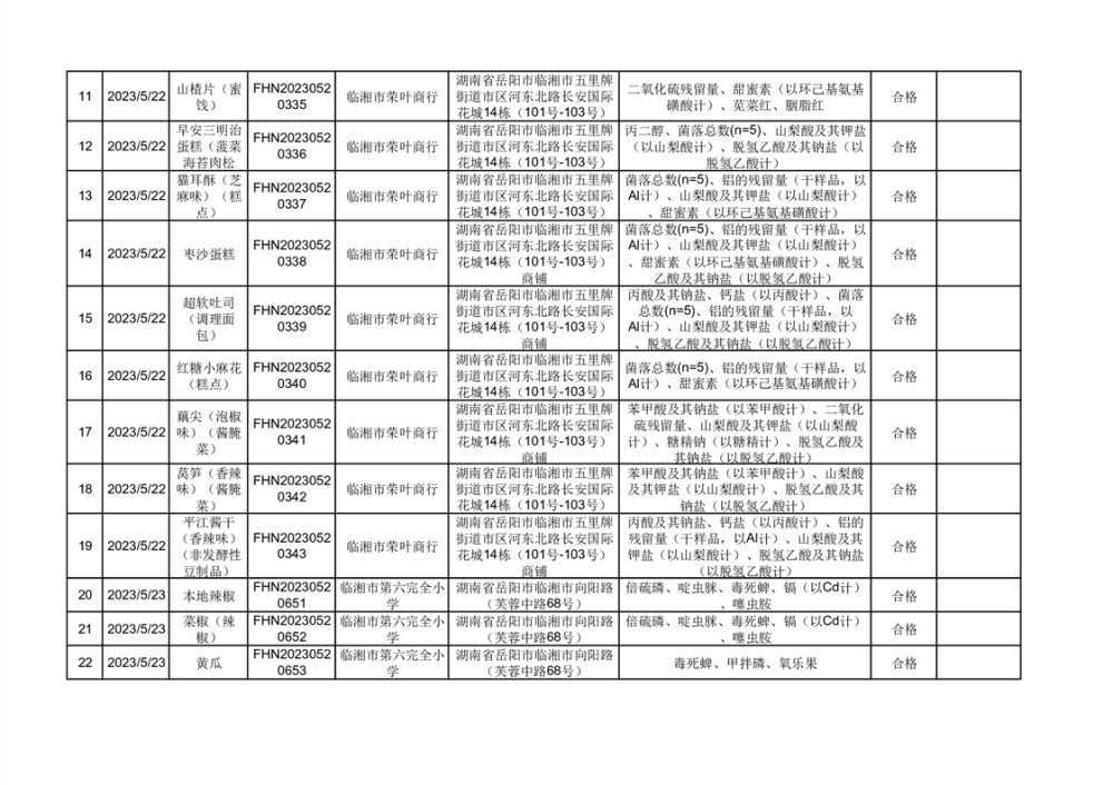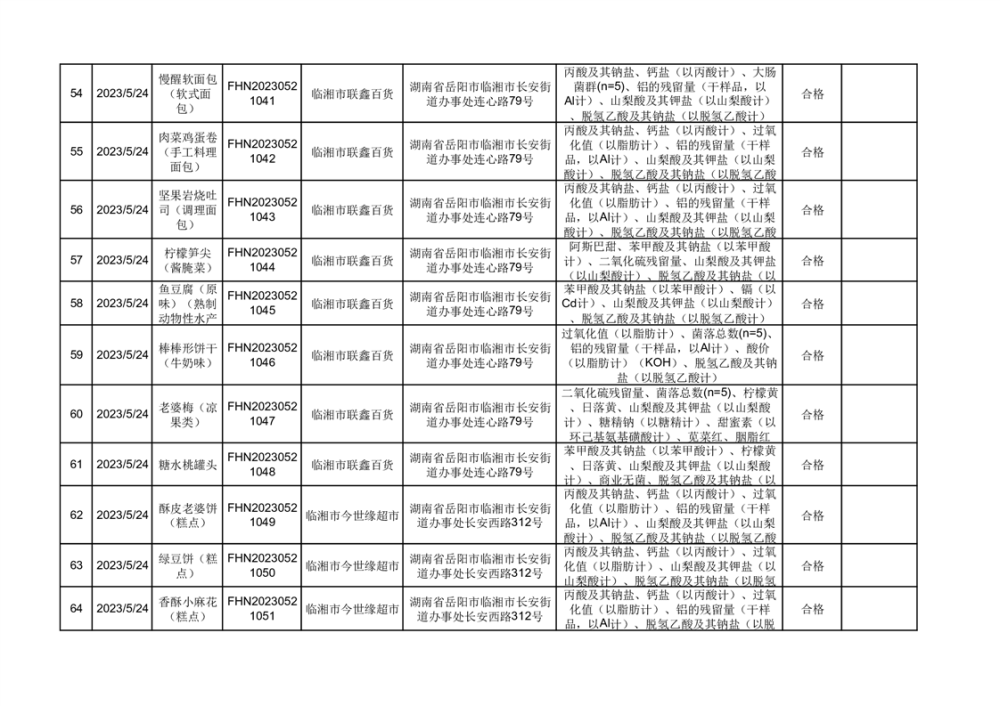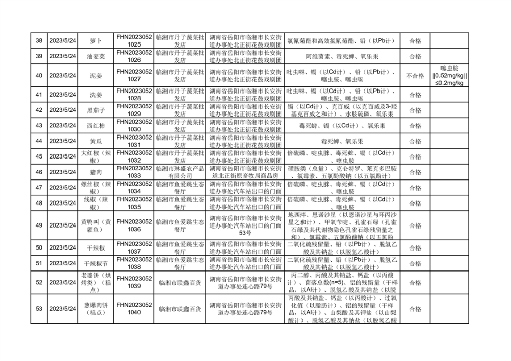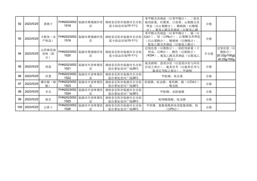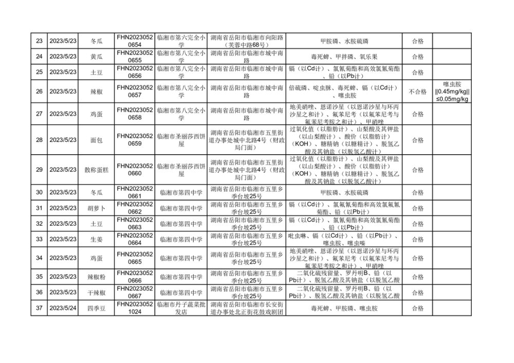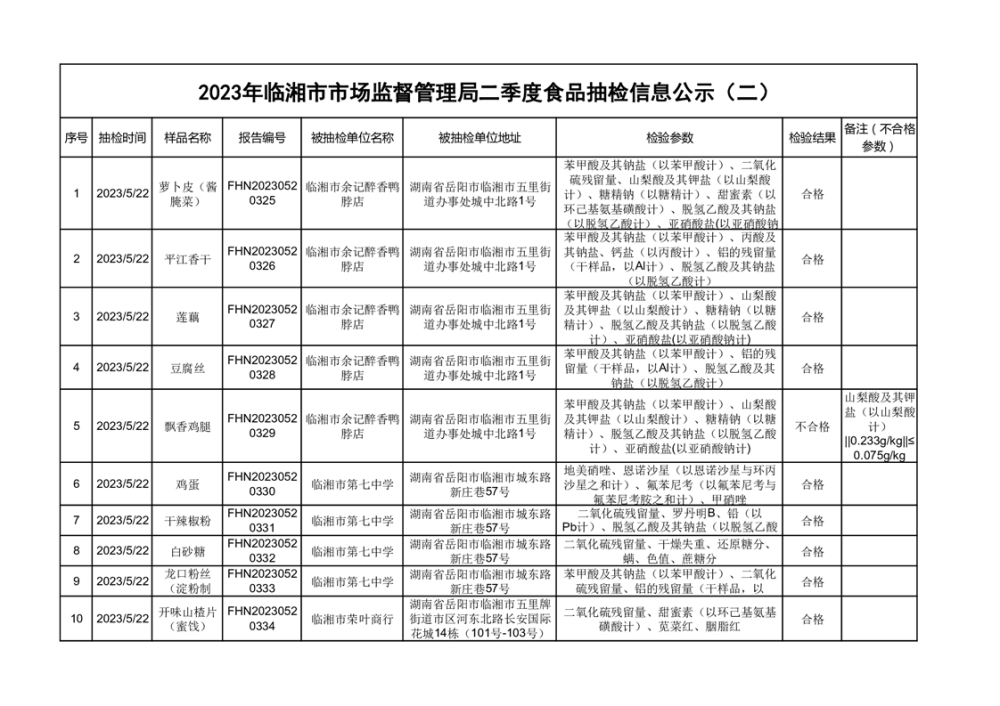 2023年临湘市市场监督管理局二季度食品抽检信息公示(二)
