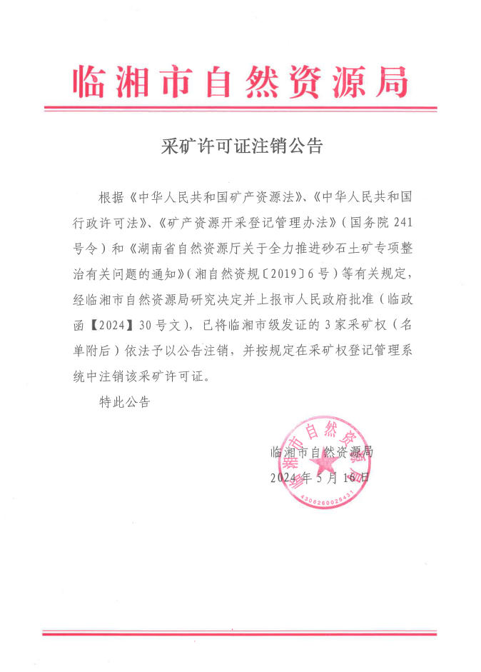 采矿许可证注销公告(2025年5月)