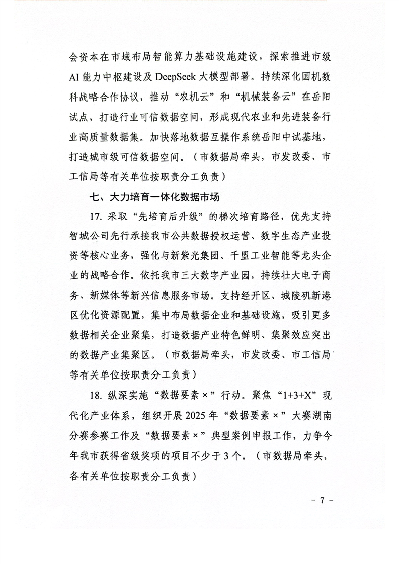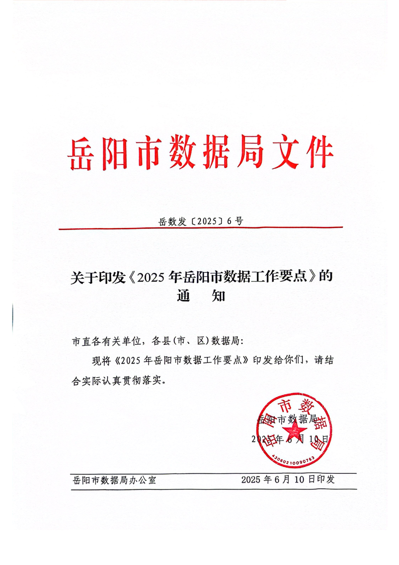 关于印发《2025 年岳阳市数据工作要点》的通知